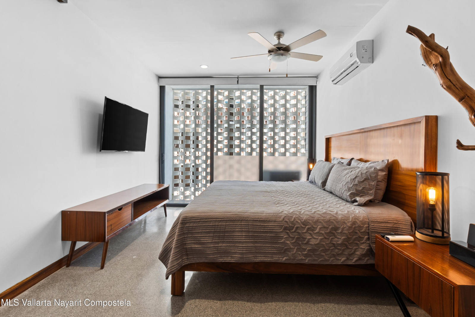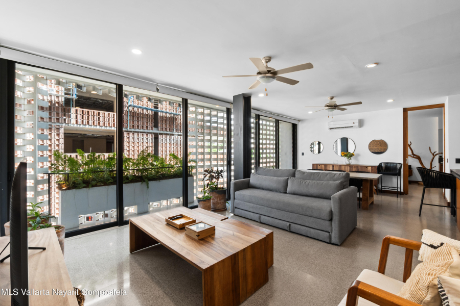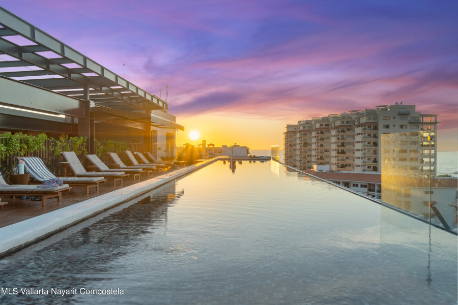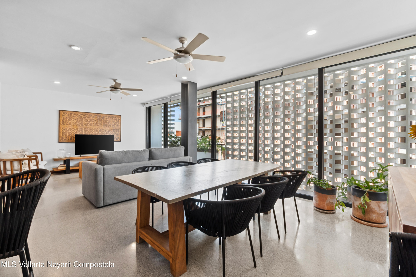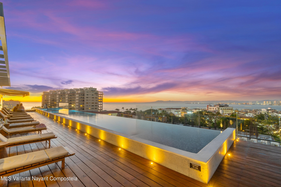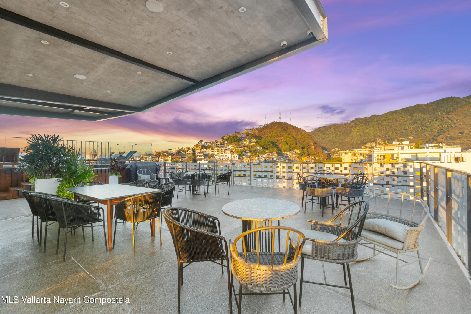 Ubicado a tres calles de la playa Los Muertos y una del rio Cuale, RINCON DE ALMAS esta en el corazon de la vibrante Zona Romantica de Puerto Vallarta. El edificio fue disenado por dos de los arquitectos mas experimentados y creativos de Mexico: Derek Dellekamp y Frida Escobedo. Su unico diseno de celosia perimetral, realizado con analisis bioclimatico, permite la entrada de luz natural y el flujo de aire fresco del rio, al tiempo que mantiene la privacidad de todas las unidades. Acabados de concreto, metal y ceramica en todo el edificio. Esta unidad es una pieza de arte unica donde tus sentidos cobran vida. Increibles vistas de 360 grados desde su terraza al aire libre con piscina semiolimpica, gimnasio, area de descanso y BBQ. Estacionamiento y bodega subterraneos.