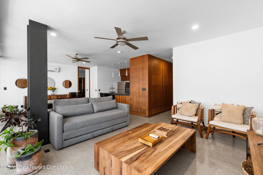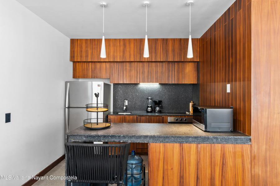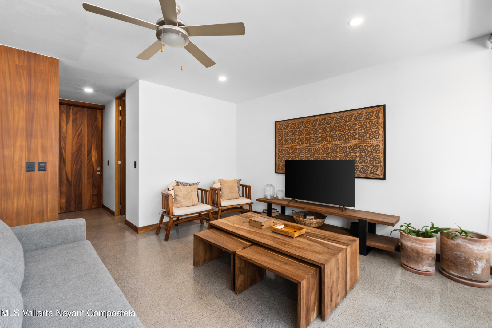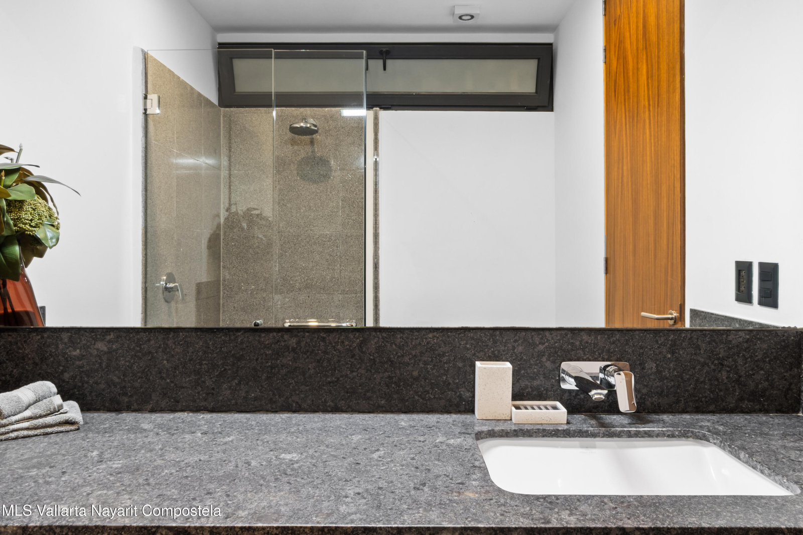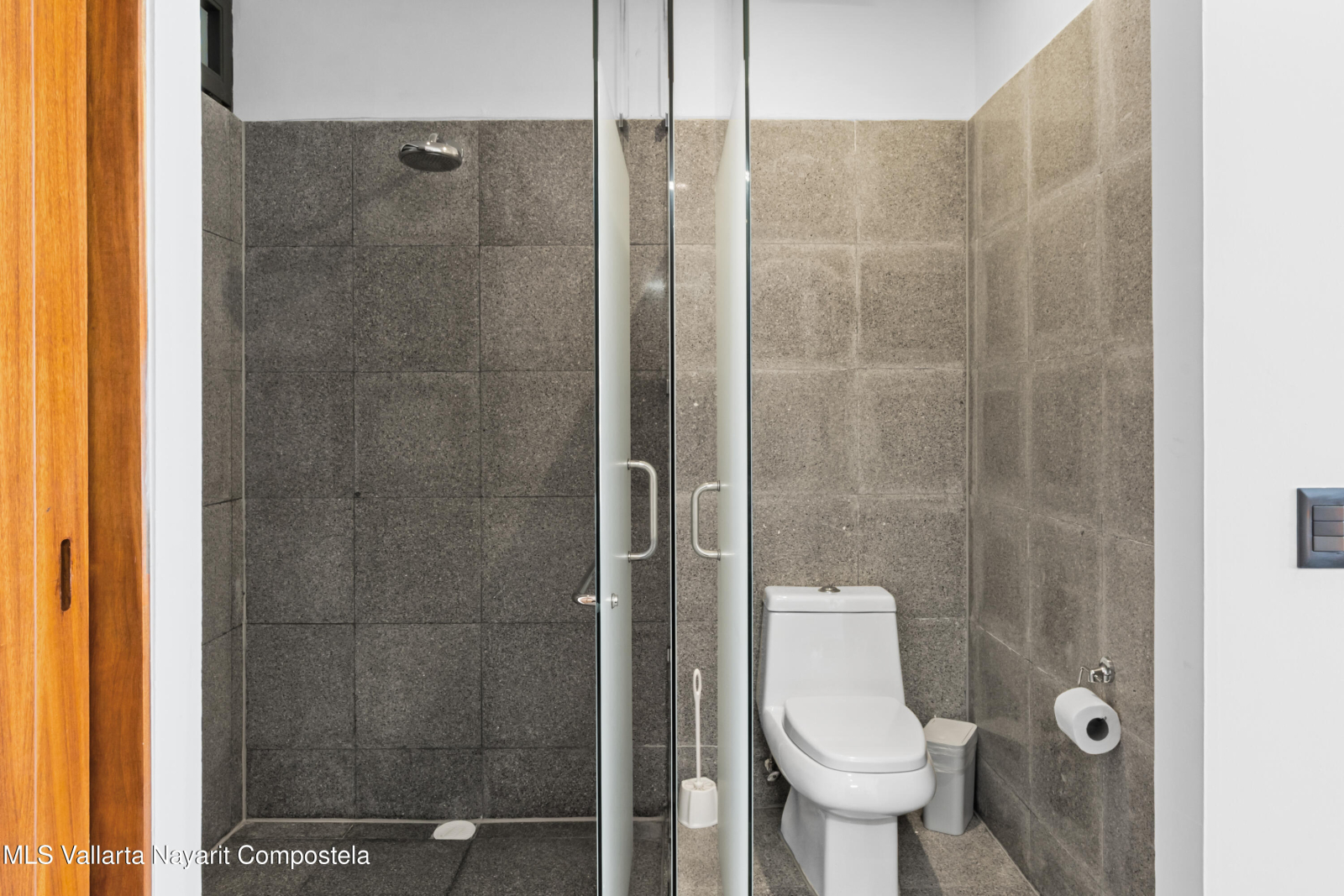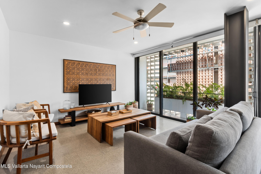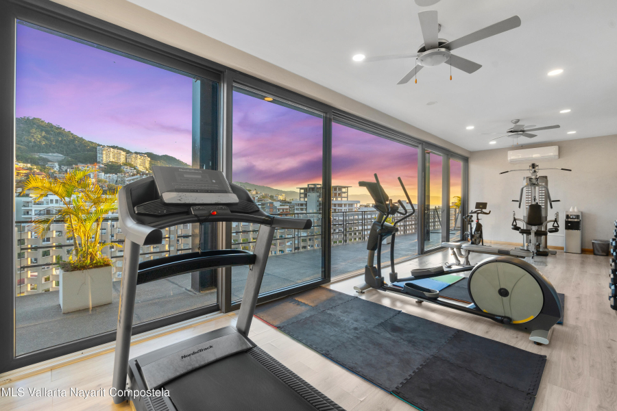 Ubicado a tres calles de la playa Los Muertos y una del rio Cuale, RINCON DE ALMAS esta en el corazon de la vibrante Zona Romantica de Puerto Vallarta. El edificio fue disenado por dos de los arquitectos mas experimentados y creativos de Mexico: Derek Dellekamp y Frida Escobedo. Su unico diseno de celosia perimetral, realizado con analisis bioclimatico, permite la entrada de luz natural y el flujo de aire fresco del rio, al tiempo que mantiene la privacidad de todas las unidades. Acabados de concreto, metal y ceramica en todo el edificio. Esta unidad es una pieza de arte unica donde tus sentidos cobran vida. Increibles vistas de 360 grados desde su terraza al aire libre con piscina semiolimpica, gimnasio, area de descanso y BBQ. Estacionamiento y bodega subterraneos.