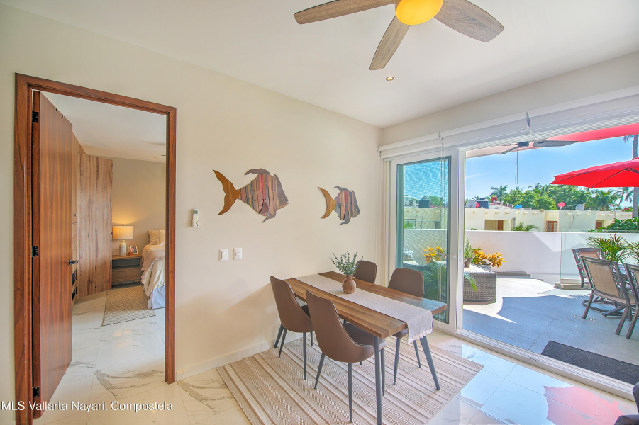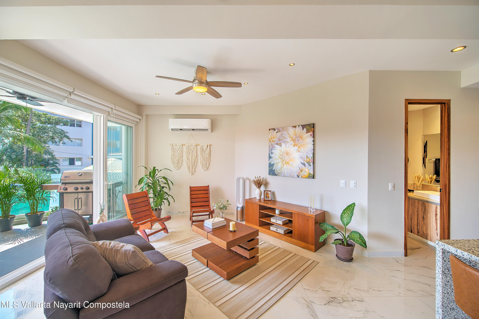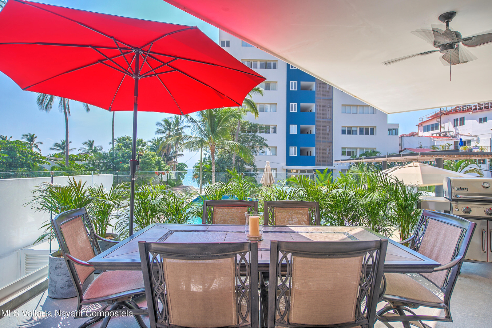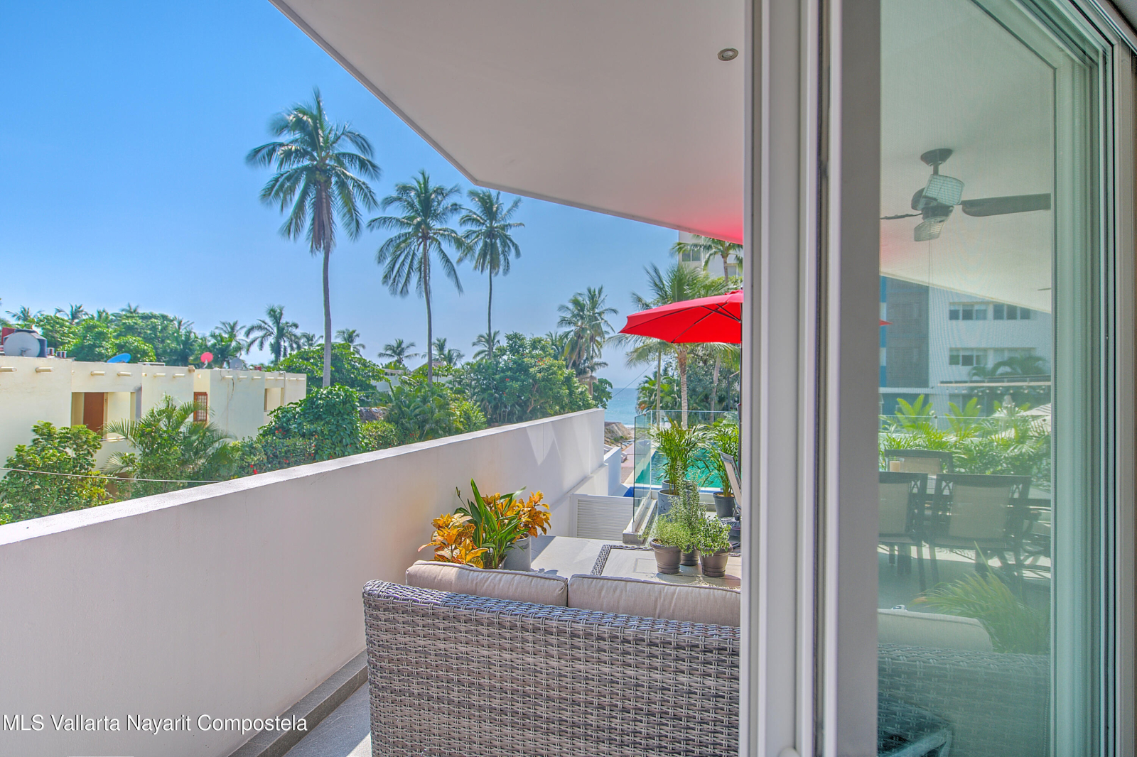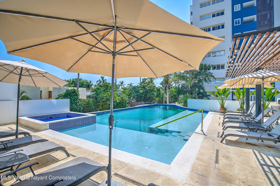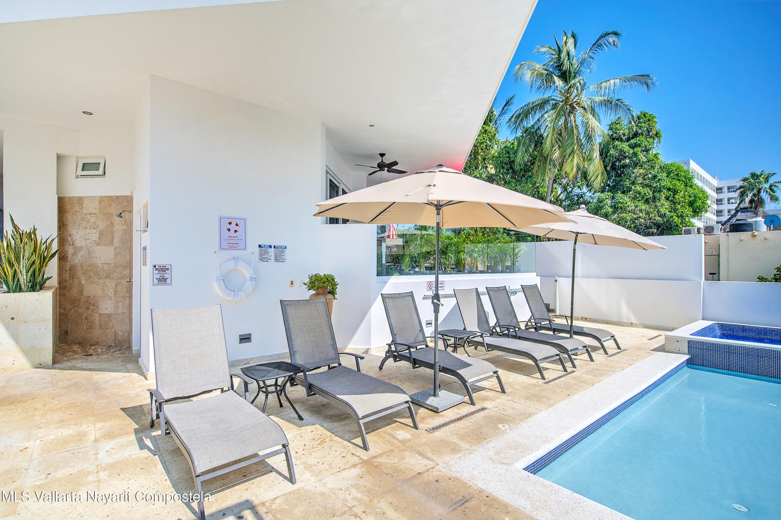 Sabbia 103Welcome to Sabbia 103–a bright and spacious one-bedroom, two-full bath condo just steps from the beach in sunny Bucerias. Designed for comfort and easy coastal living, this turnkey home features a unique layout and a large terrace perfect for enjoying your morning coffee or evening barbecues. Also delight in peak ocean views from the terrace and bedroom. The boutique building of just 18 total units offers a heated pool and a jacuzzi, both just right outside your door. Additionally, this condo has a deeded underground parking space and a private storage unit. With the beach only 70 steps away, Sabbia 103 offers the perfect blend of style, comfort, and seaside charm.