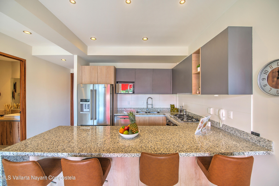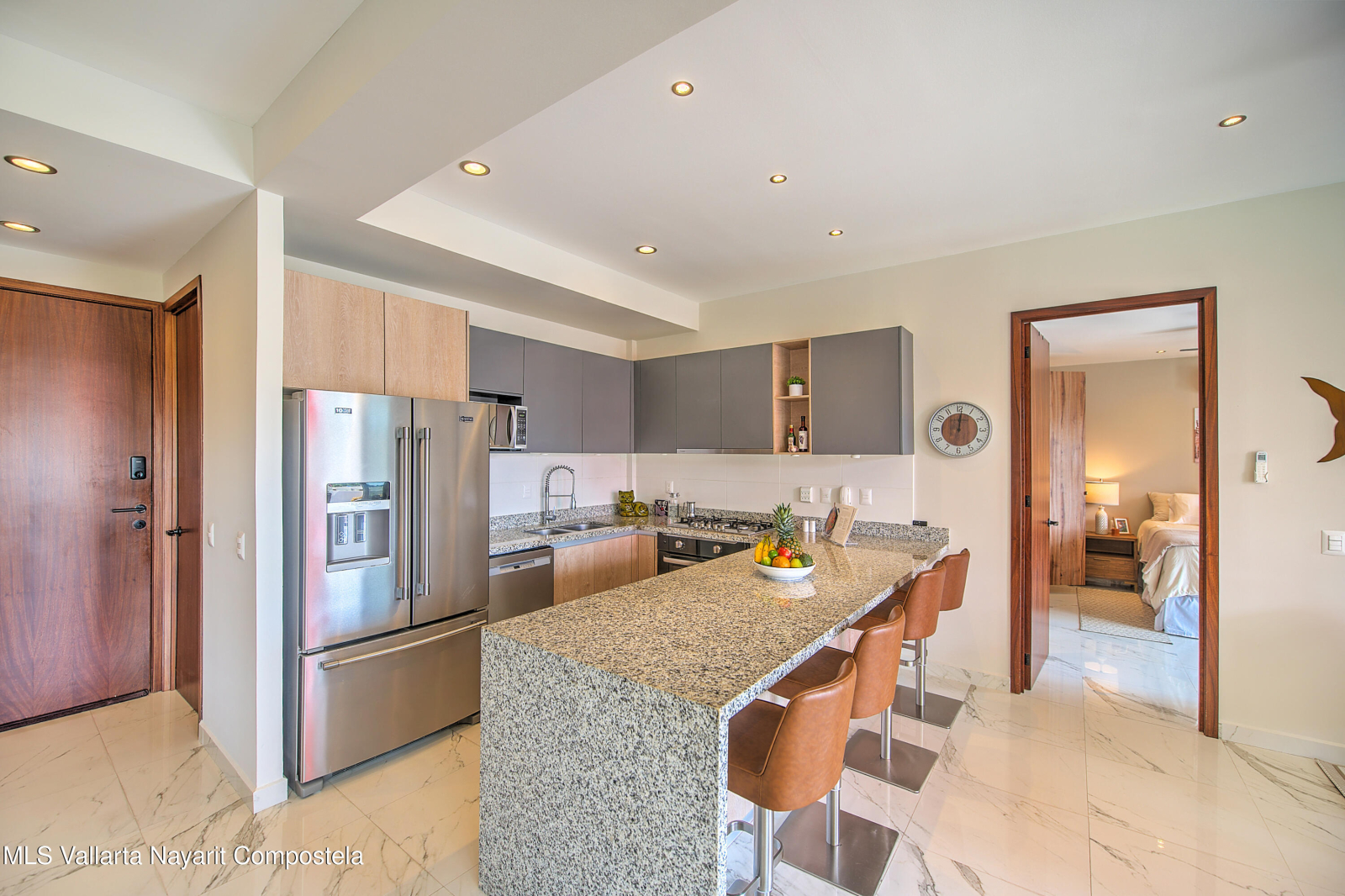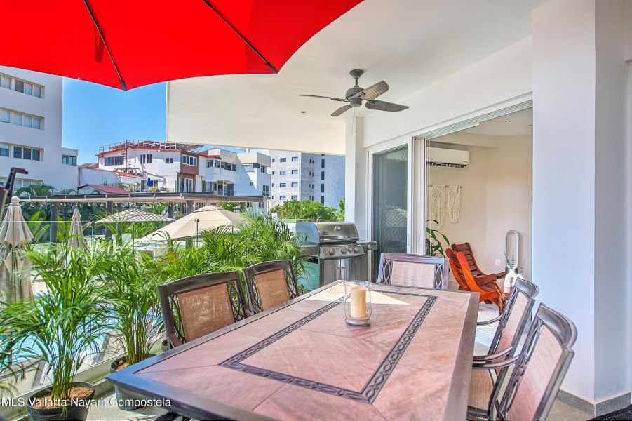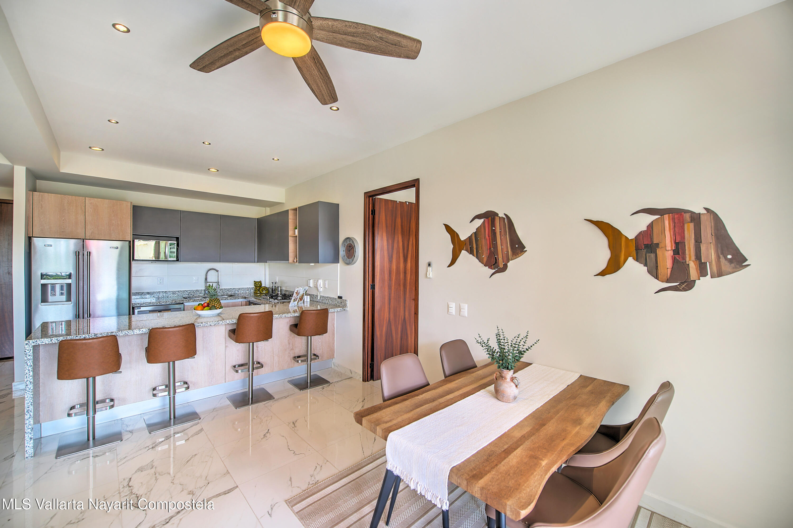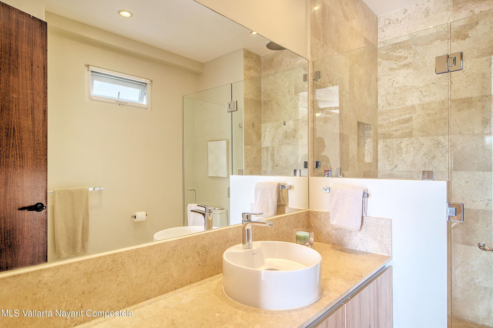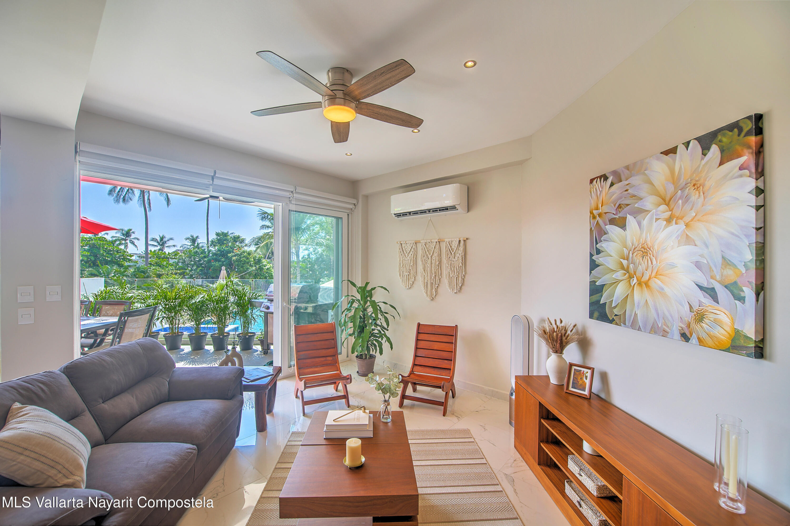 Sabbia 103Welcome to Sabbia 103–a bright and spacious one-bedroom, two-full bath condo just steps from the beach in sunny Bucerias. Designed for comfort and easy coastal living, this turnkey home features a unique layout and a large terrace perfect for enjoying your morning coffee or evening barbecues. Also delight in peak ocean views from the terrace and bedroom. The boutique building of just 18 total units offers a heated pool and a jacuzzi, both just right outside your door. Additionally, this condo has a deeded underground parking space and a private storage unit. With the beach only 70 steps away, Sabbia 103 offers the perfect blend of style, comfort, and seaside charm.