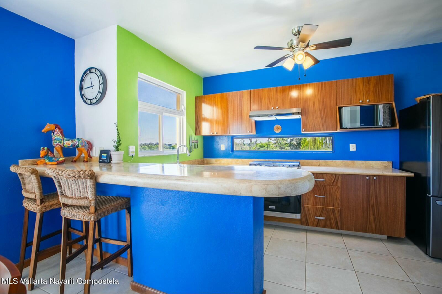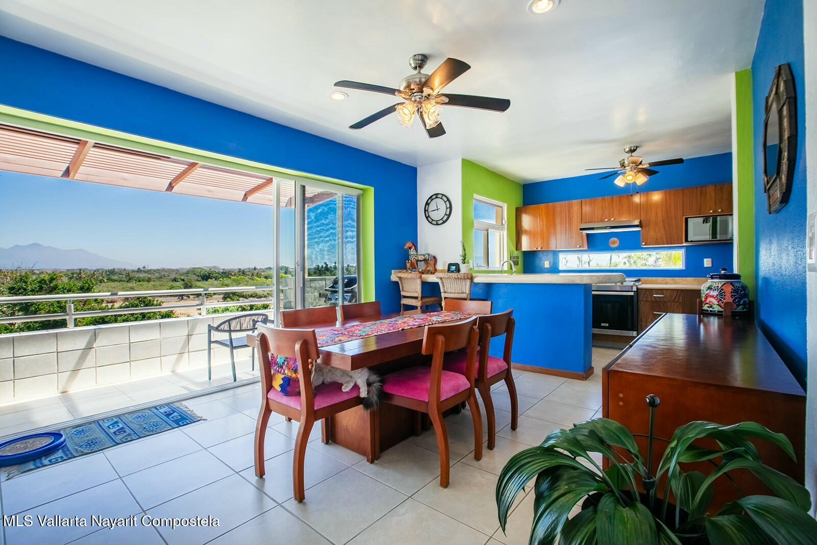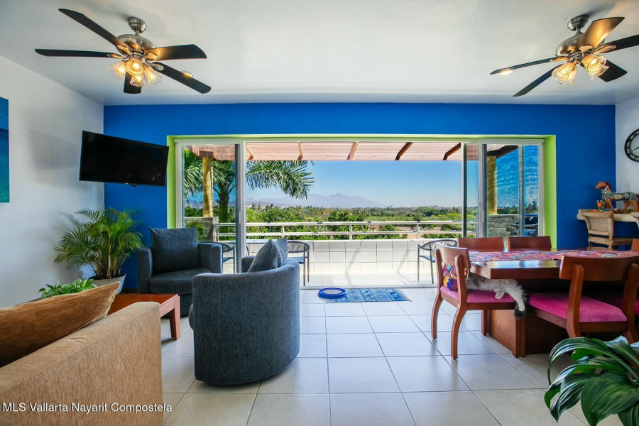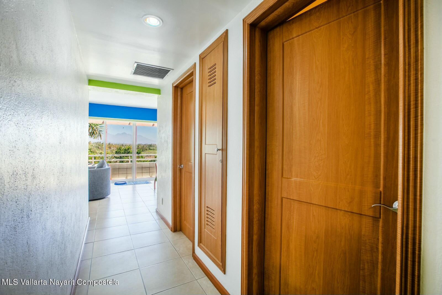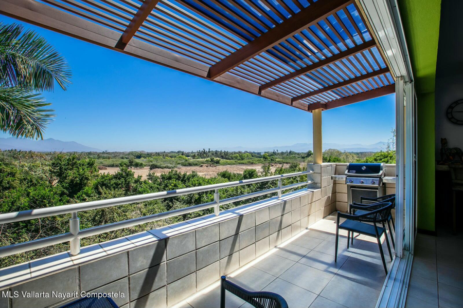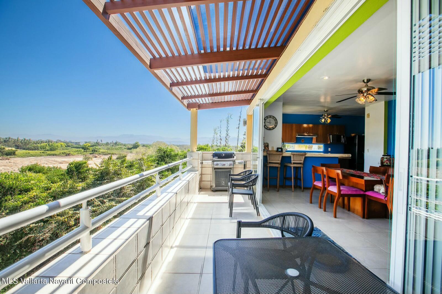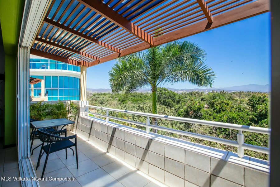 The expansive golf course greens and tropical forest that surround this 2154 square foot, three-bedroom condominium in the long stretch of Flamingos Oceanside form a picture-window 24 hours a day. They are the sight of the glowing sunrise from the master bedroom, over coffee, dinners and gatherings from its two beautiful terraces. Flora and fauna abound. This warm and nicely furnished residence has two spacious bedrooms with ensuite bathrooms located on the main level while the principal bedroom is laid out as a suite perched on the top level of the building. It has an large ensuite bathroom with a gorgeous soaker tub that flank the large rooftop terrace, with all these spaces also overlooking the greens. Function and convenience abound with a well-arranged kitchen..