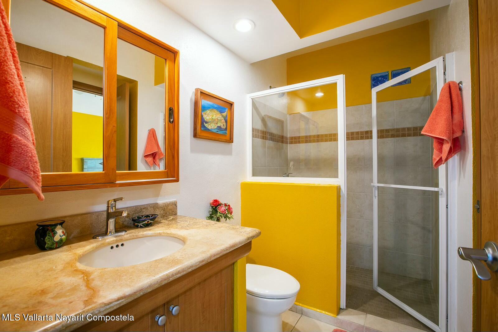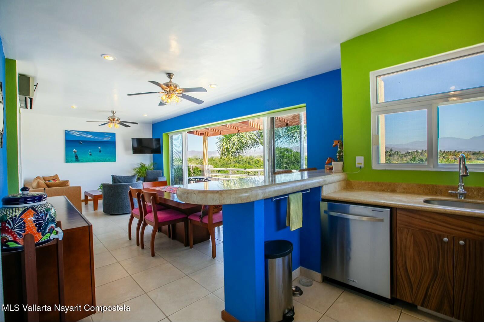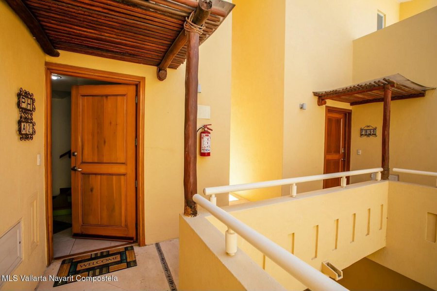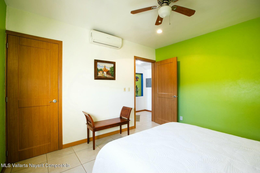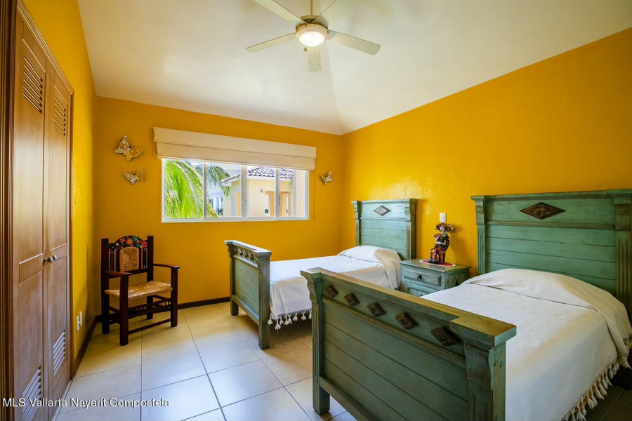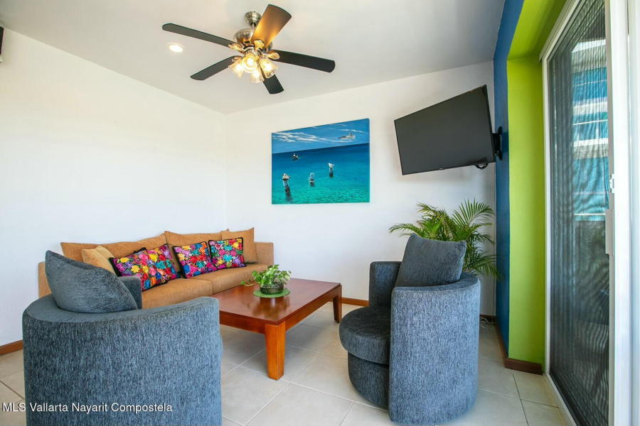 The expansive golf course greens and tropical forest that surround this 2154 square foot, three-bedroom condominium in the long stretch of Flamingos Oceanside form a picture-window 24 hours a day. They are the sight of the glowing sunrise from the master bedroom, over coffee, dinners and gatherings from its two beautiful terraces. Flora and fauna abound. This warm and nicely furnished residence has two spacious bedrooms with ensuite bathrooms located on the main level while the principal bedroom is laid out as a suite perched on the top level of the building. It has an large ensuite bathroom with a gorgeous soaker tub that flank the large rooftop terrace, with all these spaces also overlooking the greens. Function and convenience abound with a well-arranged kitchen..