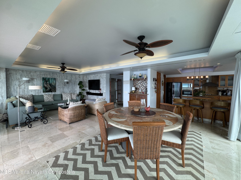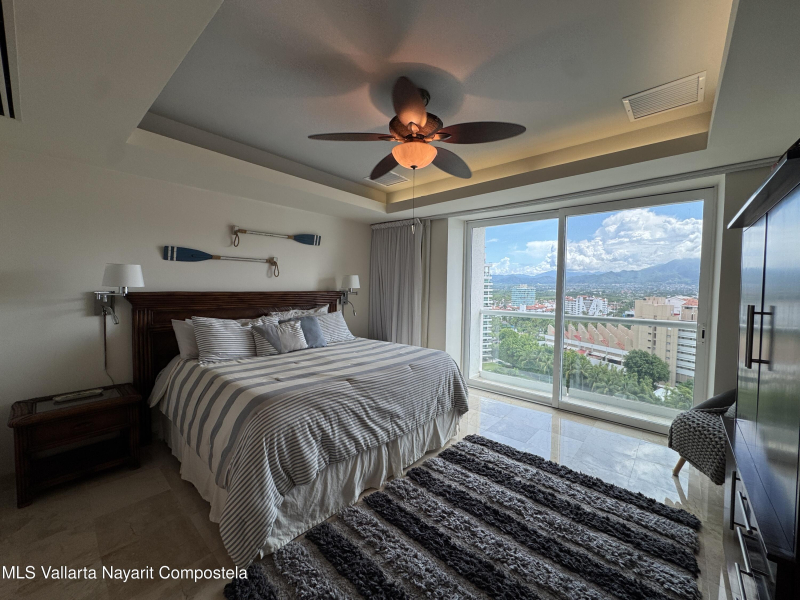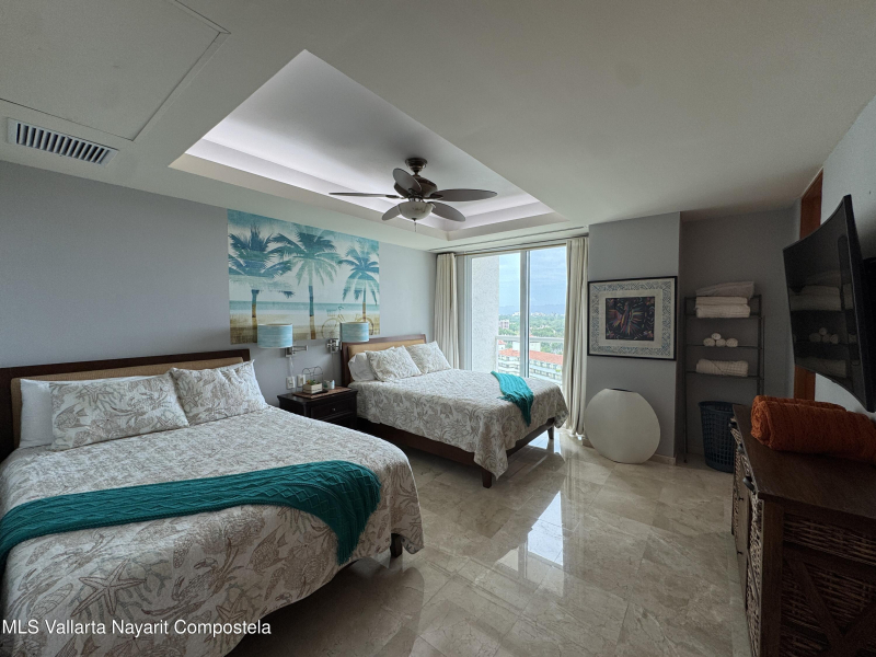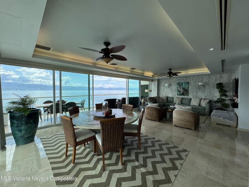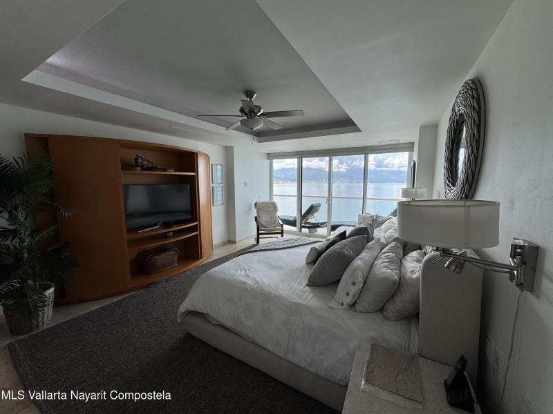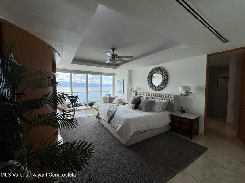 Stunning 4 bed, 4 bath oceanfront condo on the 13th floor of the exclusive Shangri-La development in Puerto Vallarta. Enjoy panoramic views of Banderas Bay from the spacious terrace and floor-to-ceiling windows. This fully furnished unit features a large open living area, modern kitchen, marble floors, and private elevator access. Each bedroom has its own en-suite bath. Resort-style amenities include a beach club, pool, gym, spa, and 24/7 security. Prime location in Marina Vallarta, just minutes from restaurants, shops, golf, and the airport.