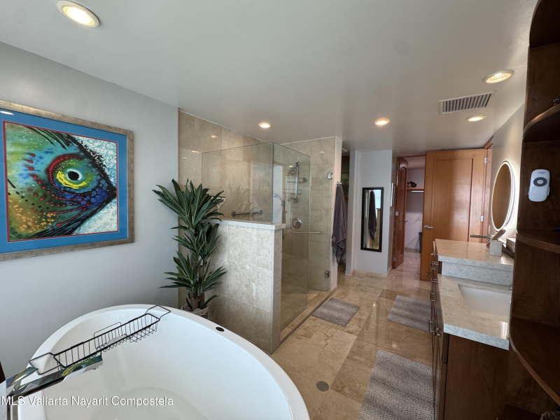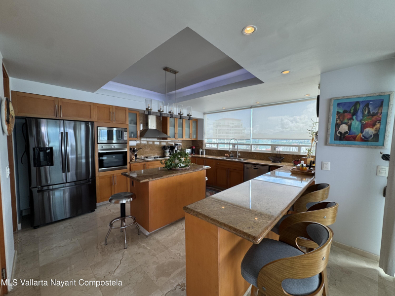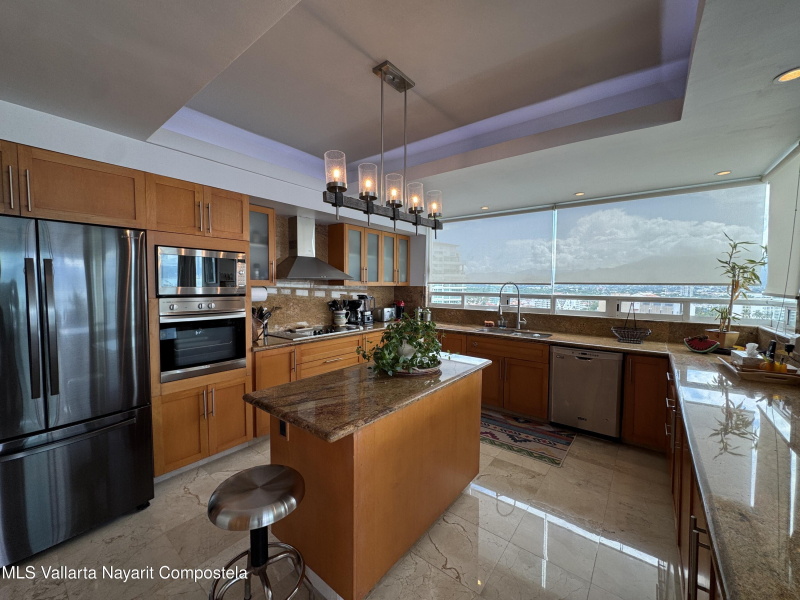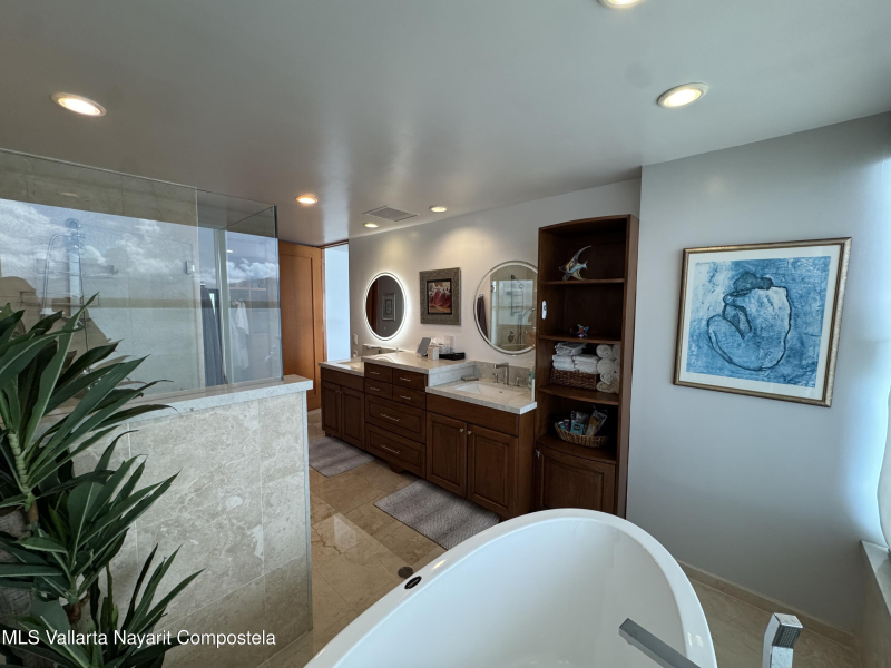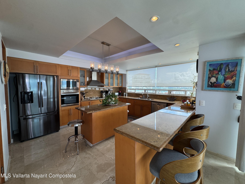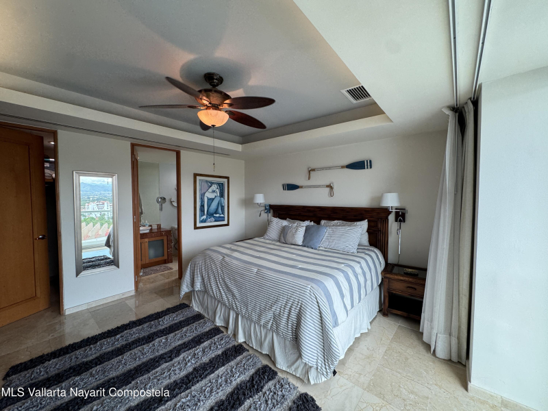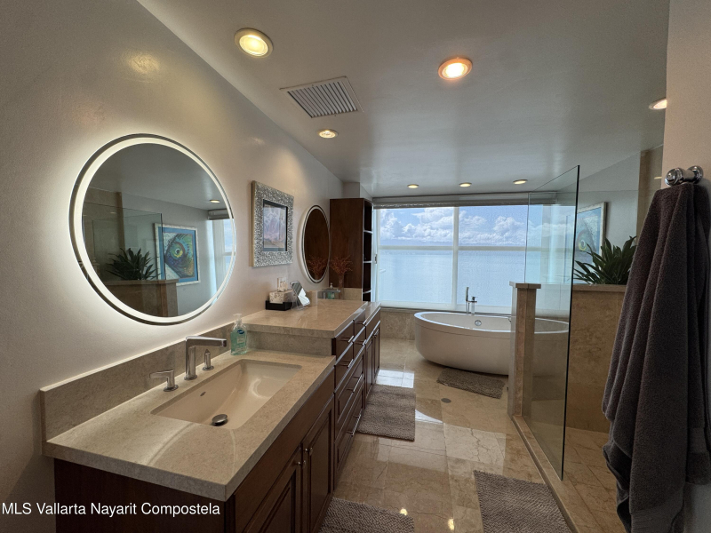 Stunning 4 bed, 4 bath oceanfront condo on the 13th floor of the exclusive Shangri-La development in Puerto Vallarta. Enjoy panoramic views of Banderas Bay from the spacious terrace and floor-to-ceiling windows. This fully furnished unit features a large open living area, modern kitchen, marble floors, and private elevator access. Each bedroom has its own en-suite bath. Resort-style amenities include a beach club, pool, gym, spa, and 24/7 security. Prime location in Marina Vallarta, just minutes from restaurants, shops, golf, and the airport.