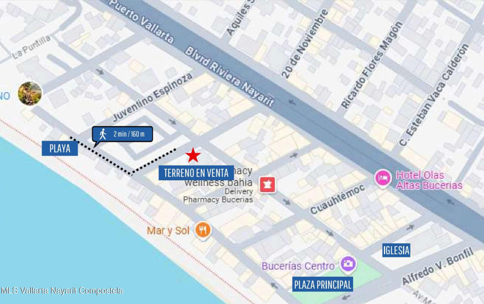 Uno de los pocos terrenos en el centro de Bucerias para desarrollar. Precio en Pesos de $28,000,000Dentro de una zona de crecimiento constante y alta demanda para desarrollos residenciales y vacacionales.Su ubicacion permite aprovechar el dinamismo de la zona, con fAcil acceso a servicios, comercios y a solo 1 cuadra de la playaEl predio cuenta con proyecto preaprobado para un edificio de 6 niveles con 28 departamentos.Ideal para quienes buscan desarrollar un proyecto rentable en un mercado consolidado, con fuerte demanda en renta vacacional y de largo plazo.Puntos clave:*Superficie: 873 m* Proyecto preaprobado: 6 niveles, 28 unidades* Zona de alta plusvalia y excelente proyeccion de crecimiento* Entorno turistico y residencial consolidado