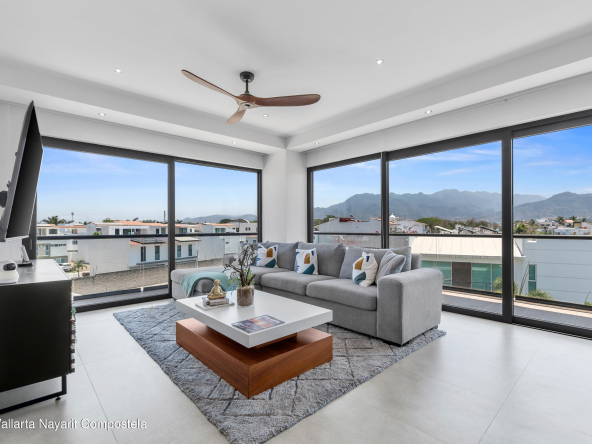Disenado por los aclamados arquitectos de GVA, Tridenta Towers presenta un estilo de vida de playa en la Zona Hotelera de Puerto Vallarta. Esta obra maestra arquitectonica ofrece 312 exquisitas residencias en la Torre 1, desde estudios hasta departamentos de 3 habitaciones, cada uno con impresionantes vistas al mar o a las montanas. Disfruta de amenidades que incluyen albercas infinity, una increible terraza superior con vistas panoramicas a la bahia, un beach club, canchas de padel, gimnasio y exuberantes jardines tropicales. Su ubicacion privilegiada combina la tranquilidad de vivir frente al mar con facil acceso a restaurantes y vida nocturna. Estacionamiento disponible con costo adicional.