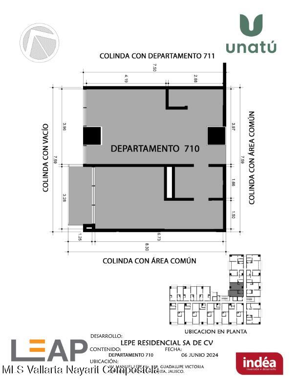 Ubicado en Calle Manuel Lepe, Col. Guadalupe Victoria, una de las zonas con mayor crecimiento y plusvalia en Puerto Vallarta, UNATU ofrece alta conectividad al aeropuerto, central camionera, centros comerciales y playas. Desarrollado por INDEA, cuenta con 116 departamentos en 10 niveles + rooftop, amenidades premium, estacionamiento y bodegas. Entrega estimada abril 2028. Mantenimiento aprox. $45 MXN/m.