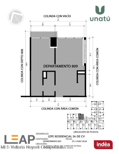 Ubicado en Calle Manuel Lepe, Col. Guadalupe Victoria, una de las zonas con mayor crecimiento y plusvalia en Puerto Vallarta, UNATU ofrece alta conectividad al aeropuerto, central camionera, centros comerciales y playas. Desarrollado por INDEA, cuenta con 116 departamentos en 10 niveles + rooftop, amenidades premium, estacionamiento y bodegas. Entrega estimada abril 2028. Mantenimiento aprox. $45 MXN/m.