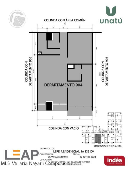 Ubicado en Calle Manuel Lepe, Col. Guadalupe Victoria, una de las zonas con mayor crecimiento y plusvalia en Puerto Vallarta, UNATU ofrece alta conectividad al aeropuerto, central camionera, centros comerciales y playas. Desarrollado por INDEA, cuenta con 116 departamentos en 10 niveles + rooftop, amenidades premium, estacionamiento y bodegas. Entrega estimada abril 2028. Mantenimiento aprox. $45 MXN/m.