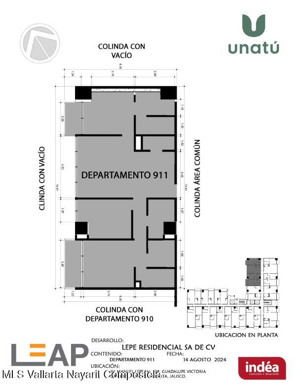 Ubicado en Calle Manuel Lepe, Col. Guadalupe Victoria, una de las zonas con mayor crecimiento y plusvalia en Puerto Vallarta, UNATU ofrece alta conectividad al aeropuerto, central camionera, centros comerciales y playas. Desarrollado por INDEA, cuenta con 116 departamentos en 10 niveles + rooftop, amenidades premium, estacionamiento y bodegas. Entrega estimada abril 2028. Mantenimiento aprox. $45 MXN/m