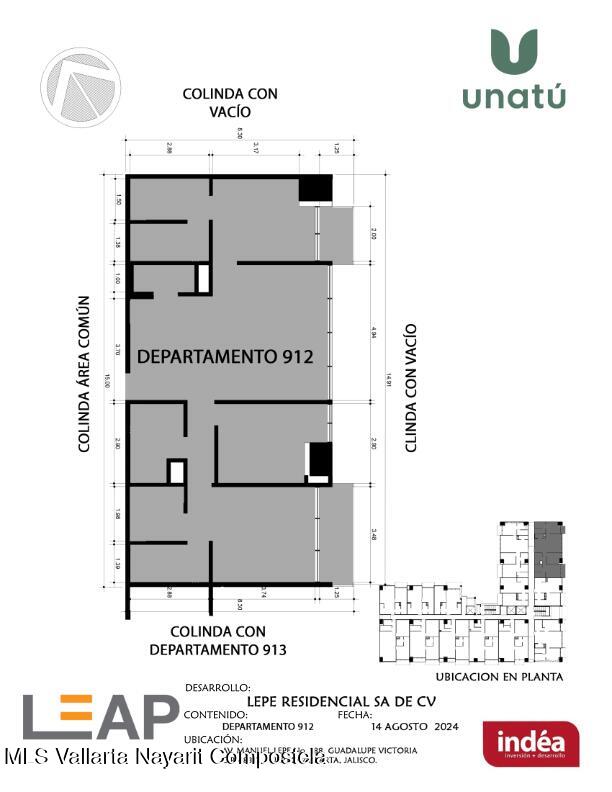 Ubicado en Calle Manuel Lepe, Col. Guadalupe Victoria, una de las zonas con mayor crecimiento y plusvalia en Puerto Vallarta, UNATU ofrece alta conectividad al aeropuerto, central camionera, centros comerciales y playas. Desarrollado por INDEA, cuenta con 116 departamentos en 10 niveles + rooftop, amenidades premium, estacionamiento y bodegas. Entrega estimada abril 2028. Mantenimiento aprox. $45 MXN/m