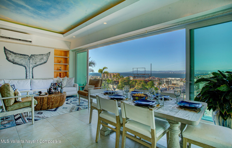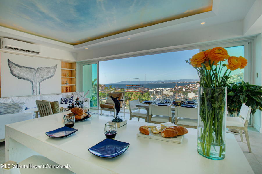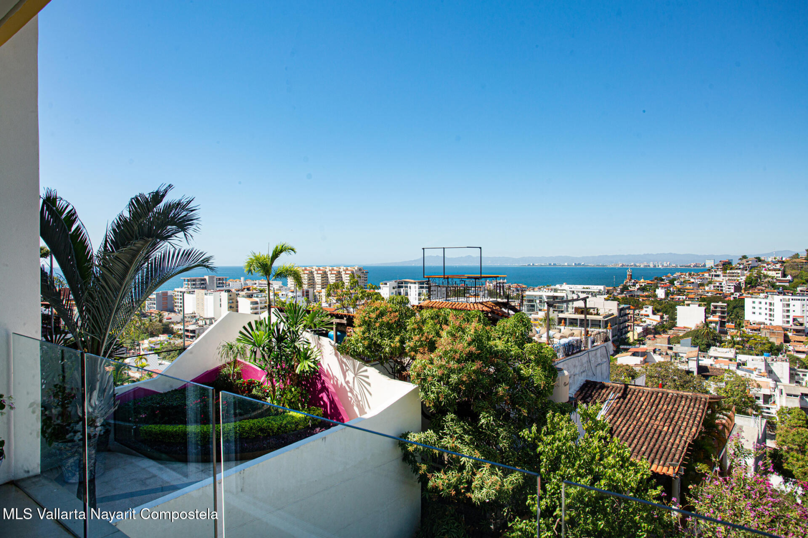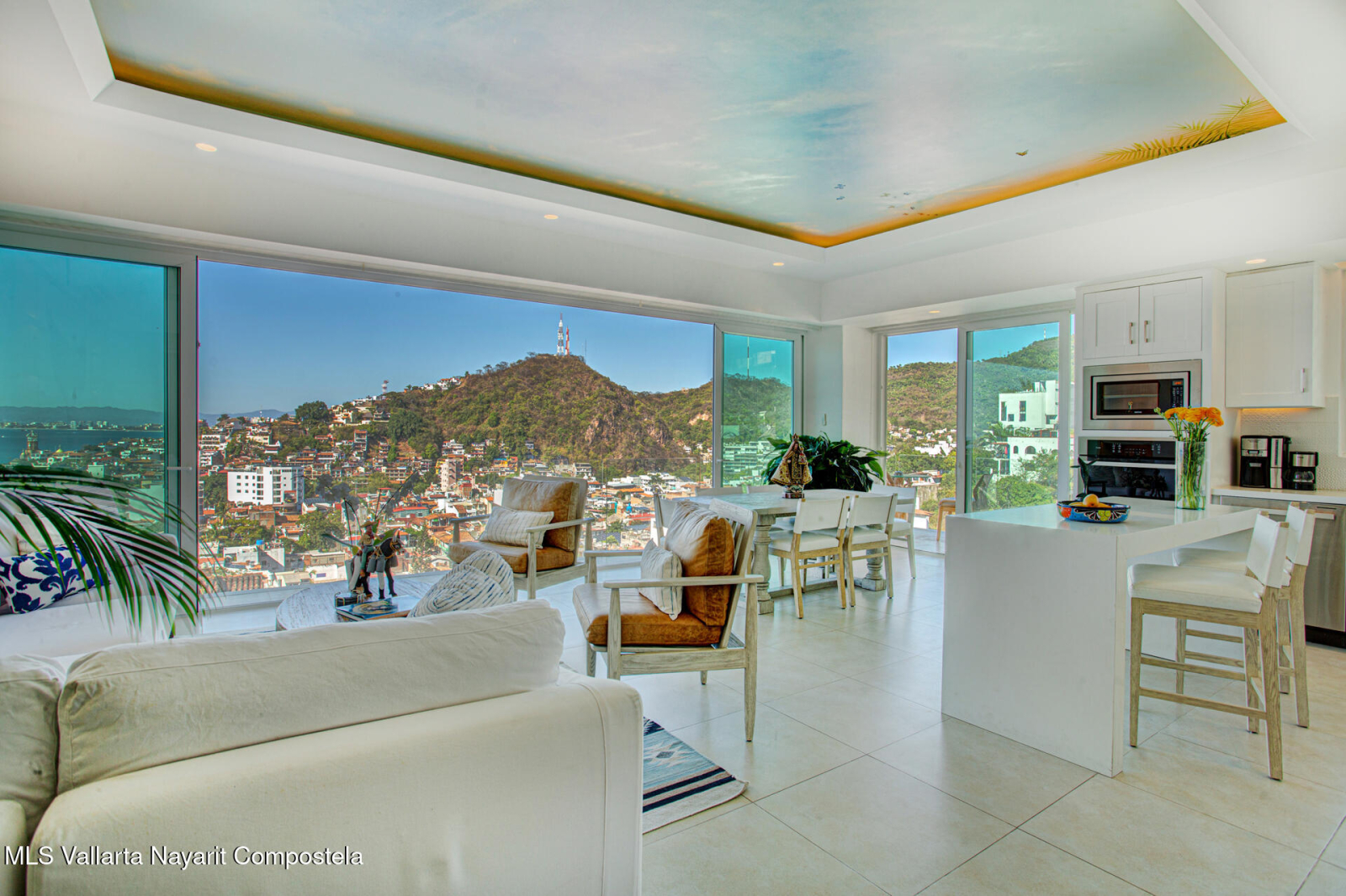 Enjoy breathtaking panoramic views of the ocean, city, and mountains from this light-filled corner residence featuring a wrap-around terrace designed for seamless indoor-outdoor living. Thoughtfully laid out for privacy, the two spacious primary suites are positioned on opposite sides of the condo — each with its own view balcony. A proper laundry room, elegant powder room, and an impressive open-concept living, dining, and kitchen area create the perfect setting for entertaining friends and family in style. The rooftop amenities include a stunning pool, hot tub, kitchen, and fully equipped gym — all offering 360 views. Located just steps from the restaurants, galleries, boutiques, and nightlife of the Romantic Zone, this impeccably maintained complex also offers 24-hour security,