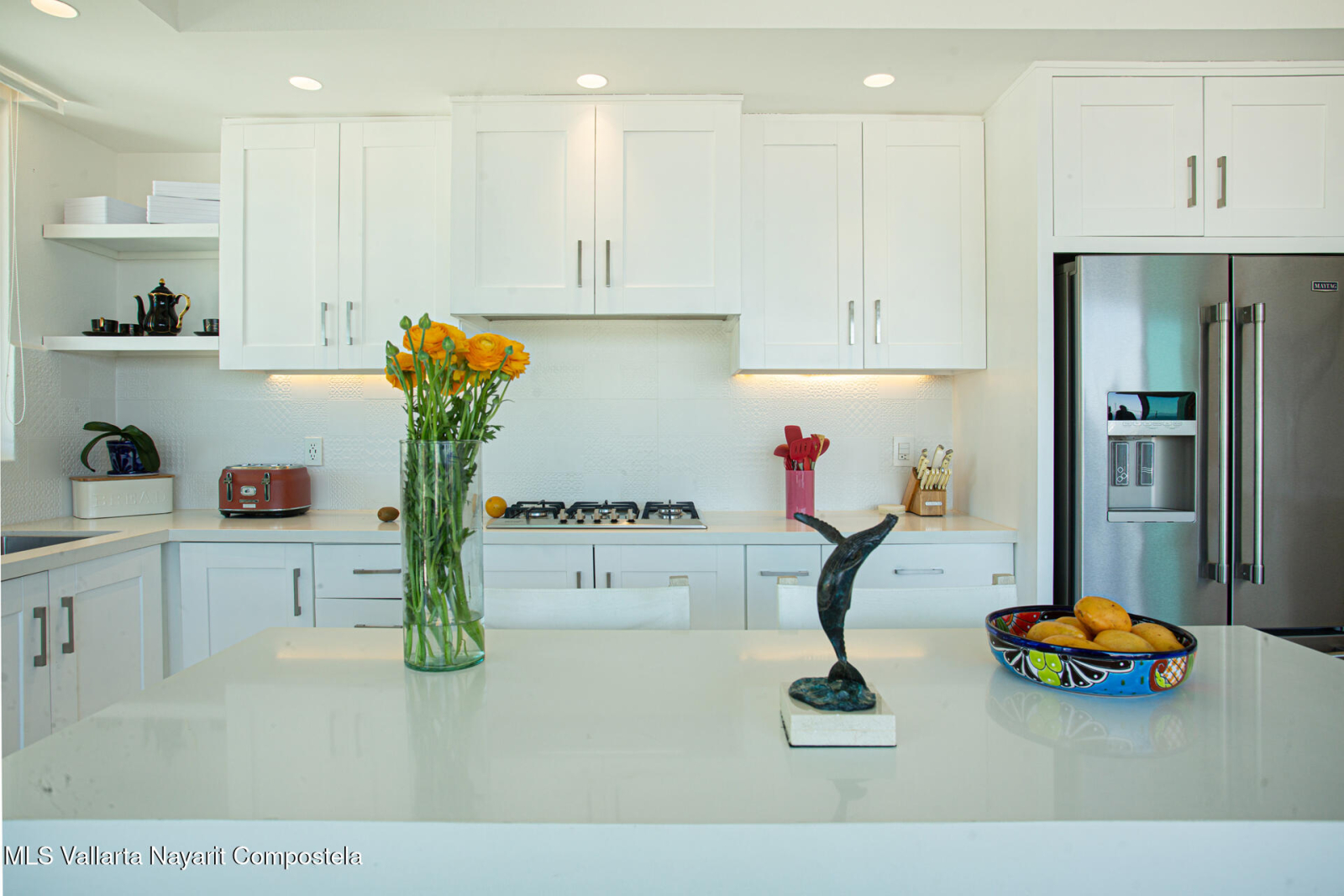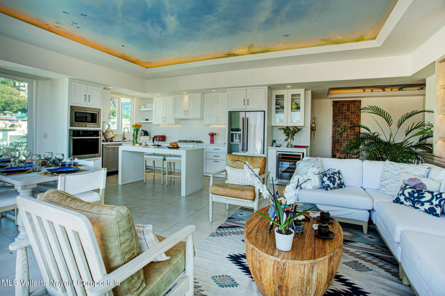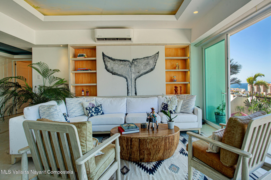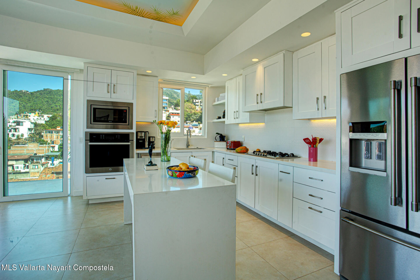 Enjoy breathtaking panoramic views of the ocean, city, and mountains from this light-filled corner residence featuring a wrap-around terrace designed for seamless indoor-outdoor living. Thoughtfully laid out for privacy, the two spacious primary suites are positioned on opposite sides of the condo — each with its own view balcony. A proper laundry room, elegant powder room, and an impressive open-concept living, dining, and kitchen area create the perfect setting for entertaining friends and family in style. The rooftop amenities include a stunning pool, hot tub, kitchen, and fully equipped gym — all offering 360 views. Located just steps from the restaurants, galleries, boutiques, and nightlife of the Romantic Zone, this impeccably maintained complex also offers 24-hour security,
