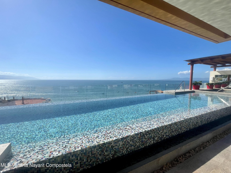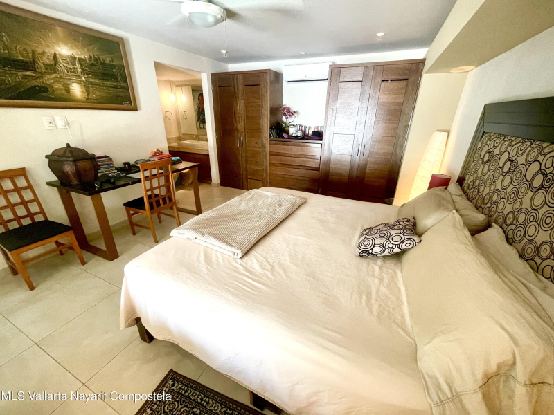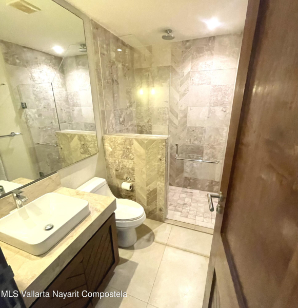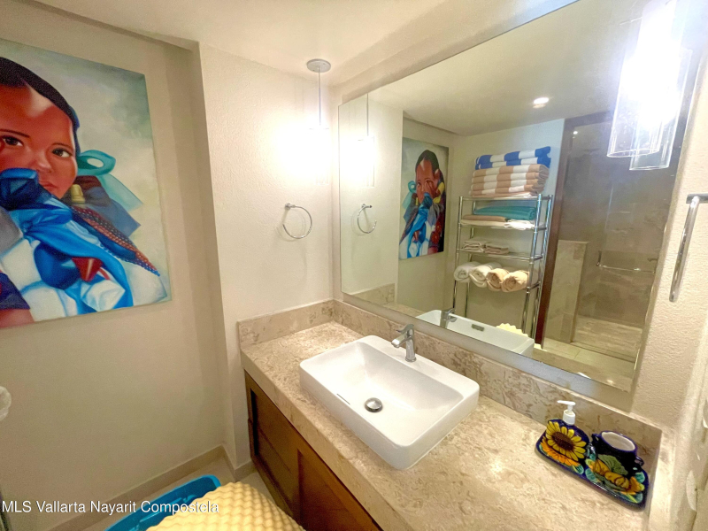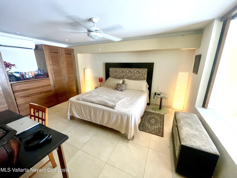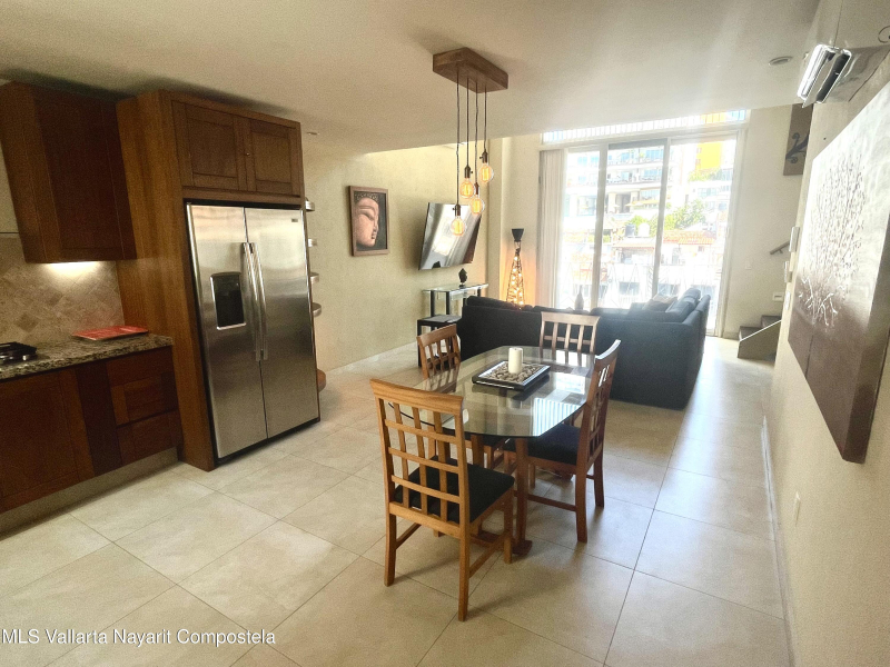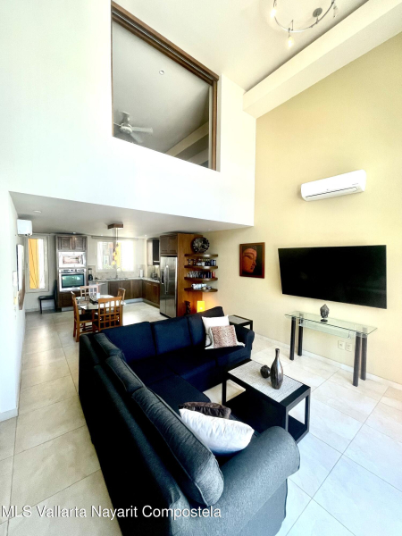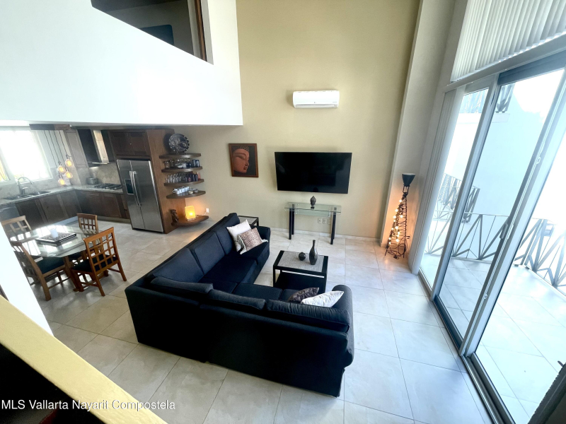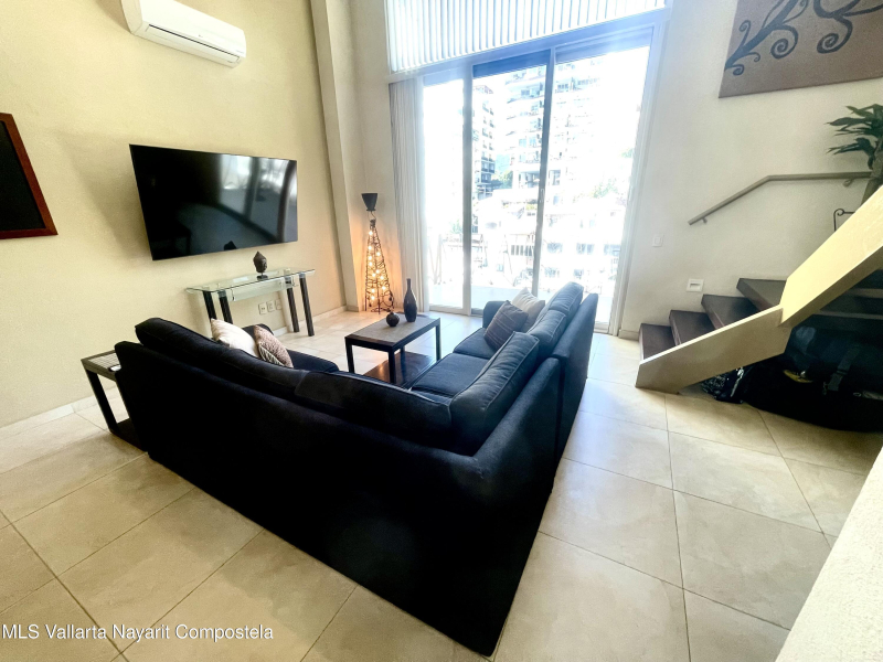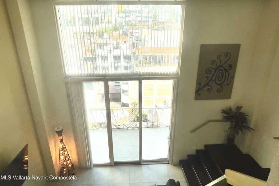 Two level penthouse with 1 large bedroom and 2 full baths at V177. Fully screened windows and doors provide great cross breeze ventilation and the oversized windows provide mountain and city views. Only 1/2 block to the beach. The first level of this spacious condo features a full bathroom, kitchen, living and dining room. The second level has your bedroom and master bathroom. With a full bath on the first level this condo offers the possibility of an additional sleeping area. Rooftop pool, jacuzzi, gym and premium location all make V177 one of the popular buildings in the Romantic Zone. The condo also includes 1 parking space in the garage.