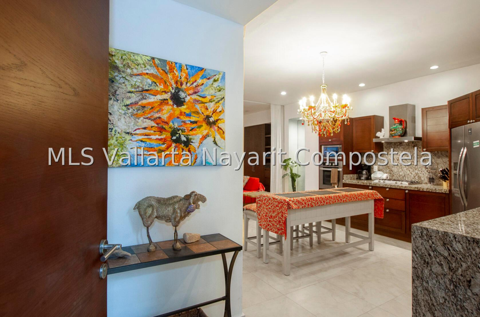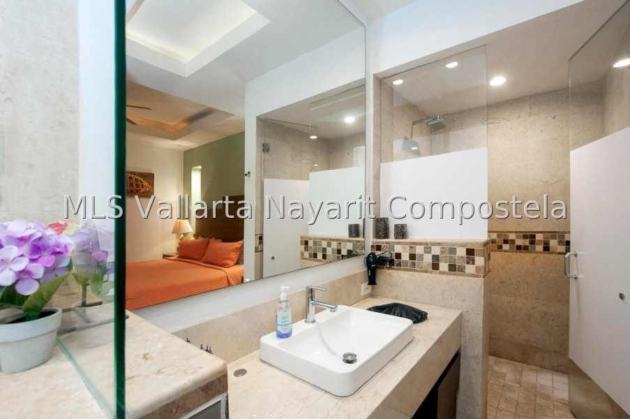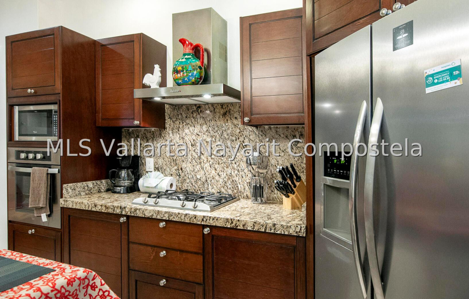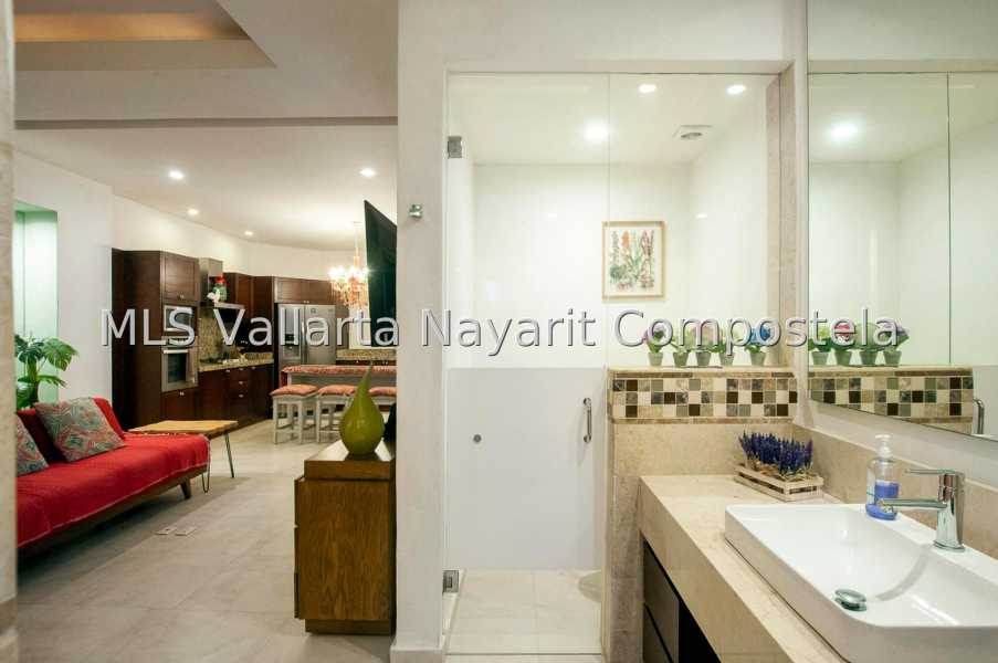Unit 509 at V399 Condominium is unique and sophisticated, featuring seclusion and comfort. The 7th-floor rooftop terrace features a heated infinity pool, one Jacuzzi, a gas barbecue grill and bar area, dining, lounging, and socializing areas, and a sweeping 360-degree view of the Bay of Banderas, the Sierra Madre Mountains, and the city lights of Puerto Vallarta. This remodeled studio, 1 full bath condo, offers 1 King-Bed, 1 Mini Split air-conditioner,high-speed Wi-Fi internet, 1 flat screen smart TV, a fully equipped kitchen with all necessary appliances, including a microwave, oven, refrigerator, and a gas cooktop. This condo also offers a full-sized washer and dryer. INCLUIDE A PRIVATE STORAGE IN THE BUILDING