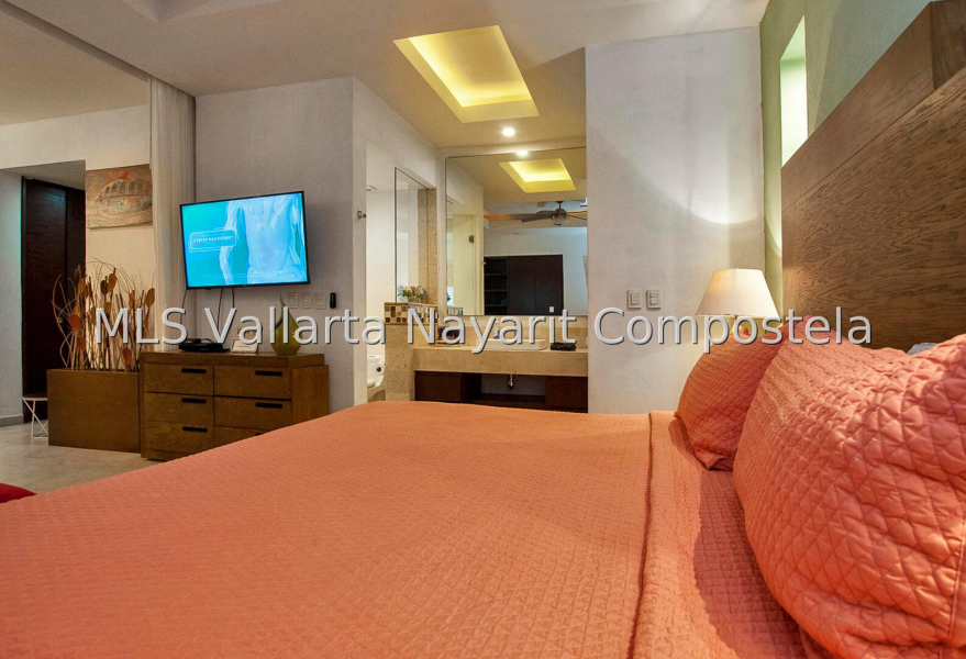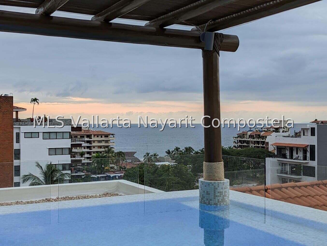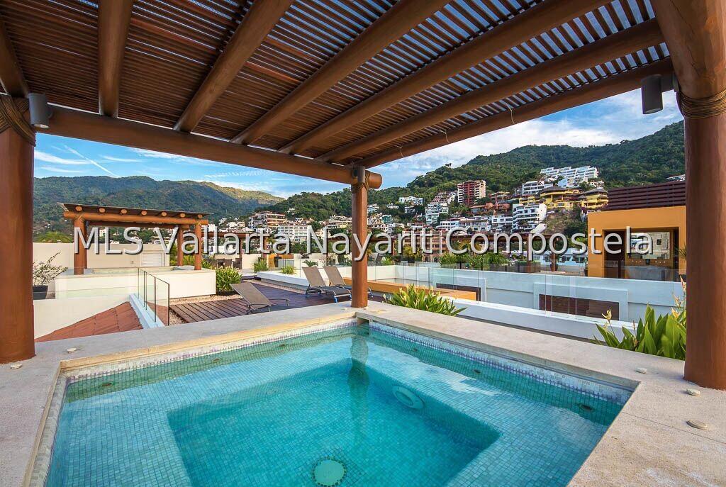 Unit 509 at V399 Condominium is unique and sophisticated, featuring seclusion and comfort. The 7th-floor rooftop terrace features a heated infinity pool, one Jacuzzi, a gas barbecue grill and bar area, dining, lounging, and socializing areas, and a sweeping 360-degree view of the Bay of Banderas, the Sierra Madre Mountains, and the city lights of Puerto Vallarta. This remodeled studio, 1 full bath condo, offers 1 King-Bed, 1 Mini Split air-conditioner, high-speed Wi-Fi internet, full-sized washer and dryer. 1 flat screen smart TV, a fully equipped kitchen with all necessary appliances. It has DEEDED underground parking spot. Great rental history and as a bonus – STORAGE UNIT IN THE BUILDING.