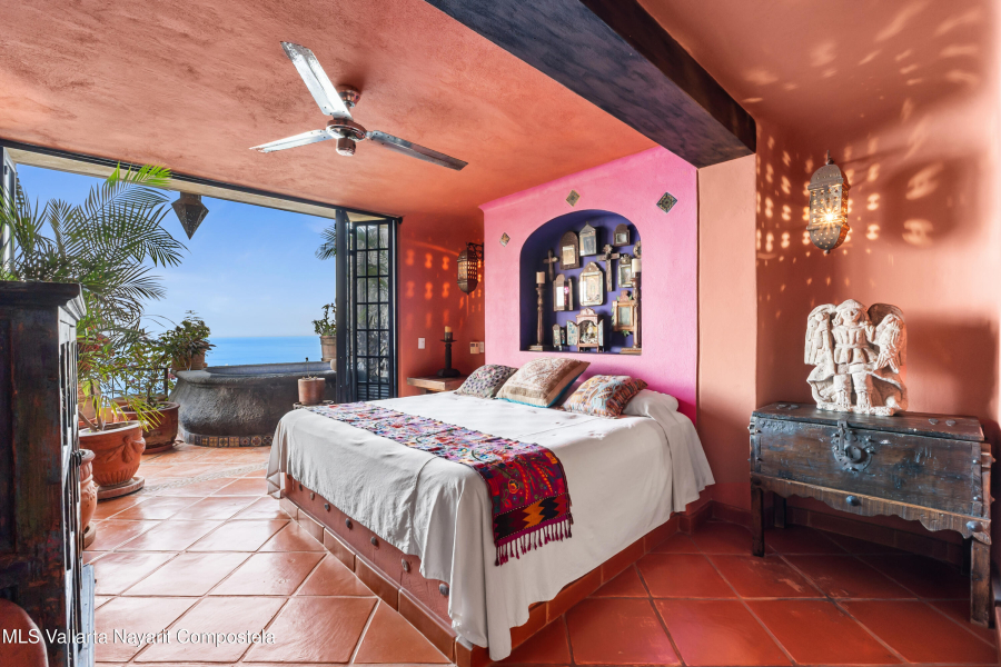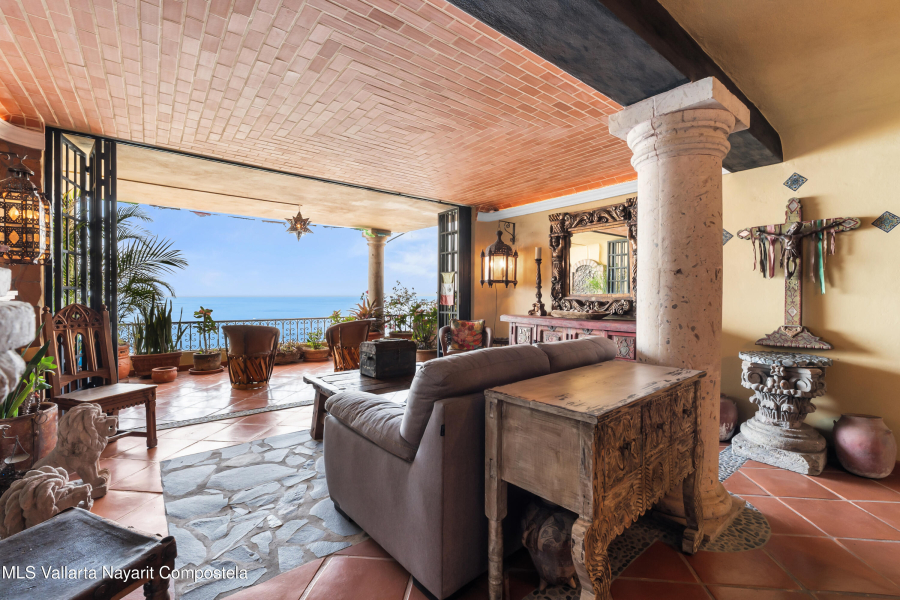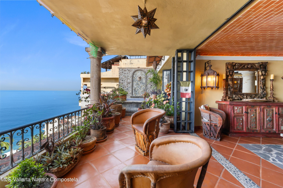 Step into a home that truly captures the magic of Vallarta. From the moment you walk in, wooden doors, clay tiles, brick accents, and handcrafted touches set the warm, authentic feel of traditional Mexico. The dining area and kitchen flow into the living room and out to a spacious terrace, where ocean views and unforgettable sunsets.To the right of the entrance, a second bedroom with its own full bath sits peacefully tucked away. Through a small hallway, the primary suite awaits with a generous bathroom, double sinks, and a comfortable closet. And just outside, on the bedroom terrace, is something genuinely special–your own private pool. With its views stretching over Conchas Chinas, it’s the perfect place to unwind, reconnect, and enjoy the kind of tranquility you can only find here.