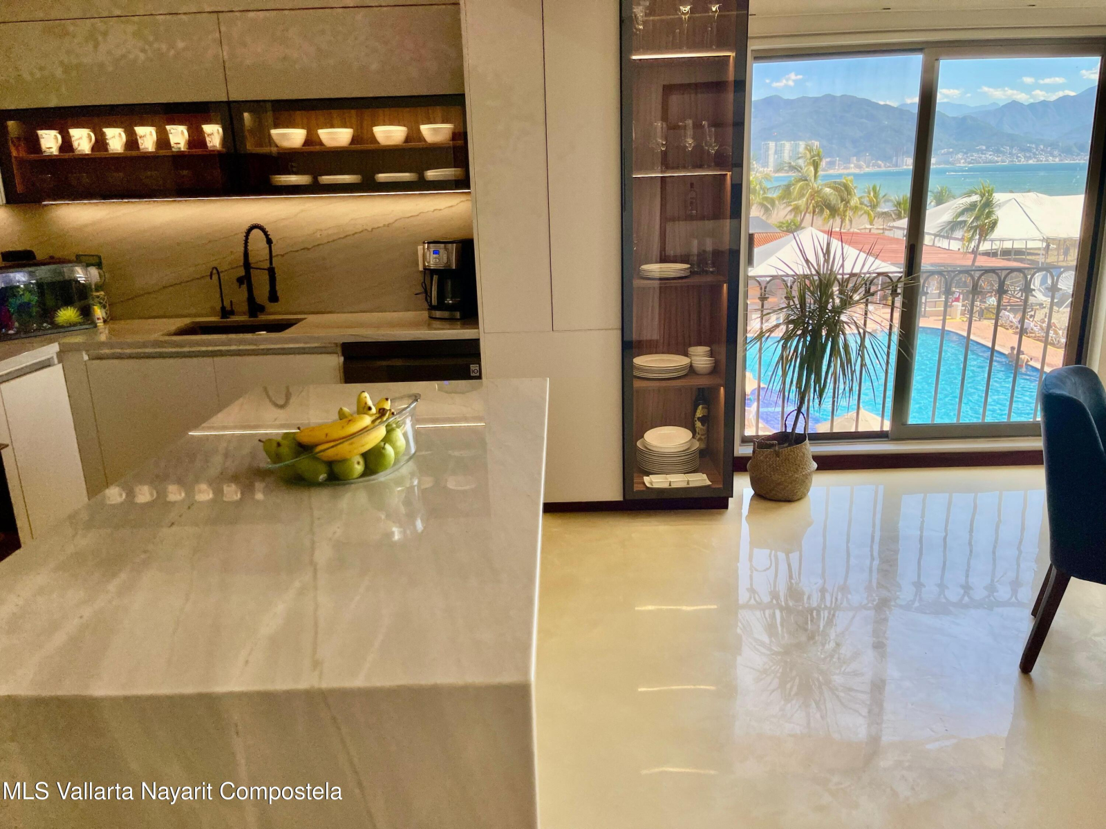 Stunning true beachfront 3-bed/3-bath residence in exclusive Marina Vallarta, perfectly positioned on the third floor with sweeping ocean views. Completely renovated from top to bottom, this elegant home feels like a brand-new condo, featuring refined furnishings, pristine finishes, and brand-new mini-splits. Enjoy full access to Velas Vallarta hotel services–room service, bell staff, housekeeping, and daily entertainment. Steps from palm-lined cantera stone streets and 50+ restaurants, and just 5-10 minutes from the airport. Close to shops, Walmart, and Costco. Electricity included in fees–luxury and convenience on the beach.