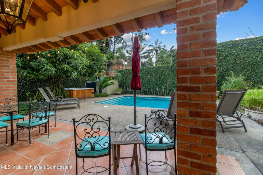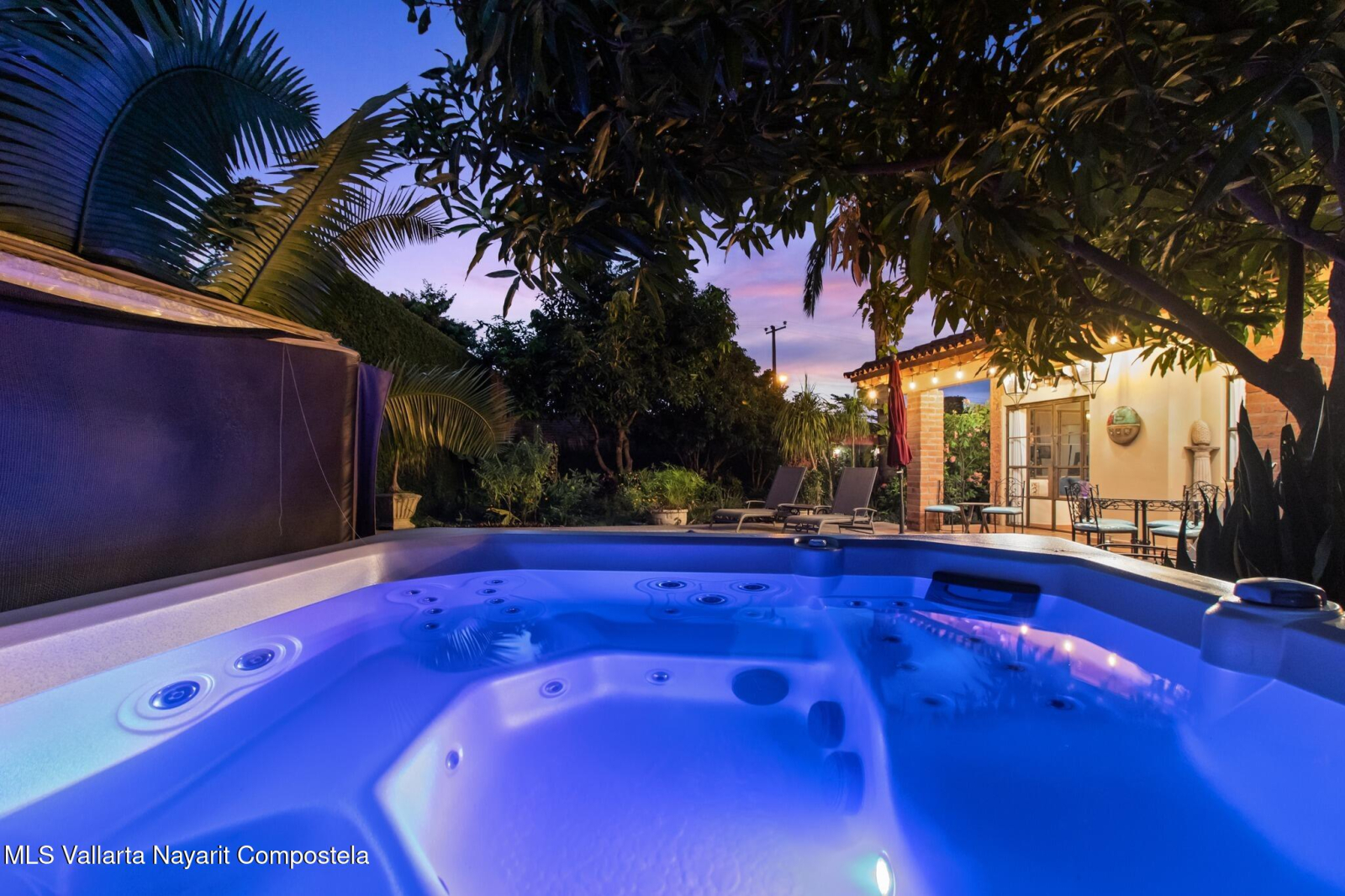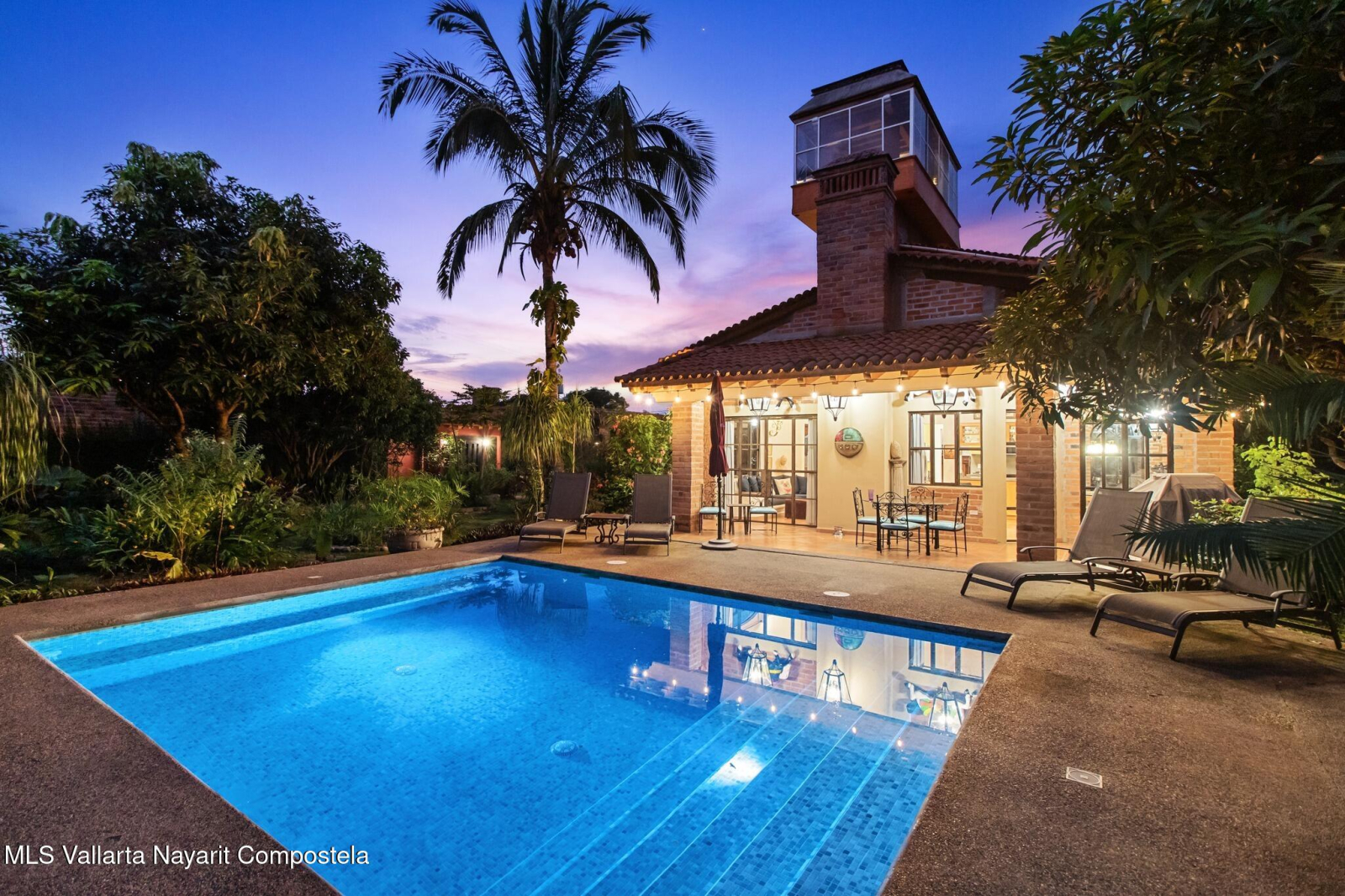Villa Jardin de Mariposas is a refined modern-hacienda residence surrounded by lush, organically landscaped gardens of mature fruit trees and tropical flora. The main home offers expansive living areas with lofted wood-rafter ceilings and custom steel-and-glass doors that create a seamless indoor-outdoor flow. Each level features a spacious primary suite with a private terrace, walk-in closet, and ensuite bath. Outdoor living includes a saltwater pool, sun deck, covered dining terrace, and a hot tub tucked into vibrant tropical foliage.A fully equipped chef’s kitchen, high-efficiency air-conditioning throughout, and generous natural light elevate the home’s comfort and livability. The property also includes a private guest house with kitchenette and patio, ideal for extended stays.
