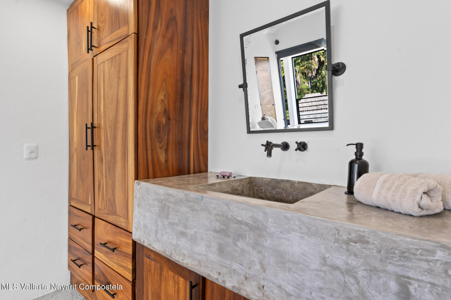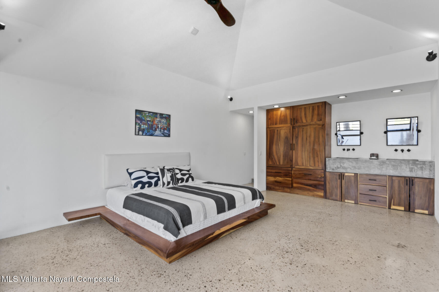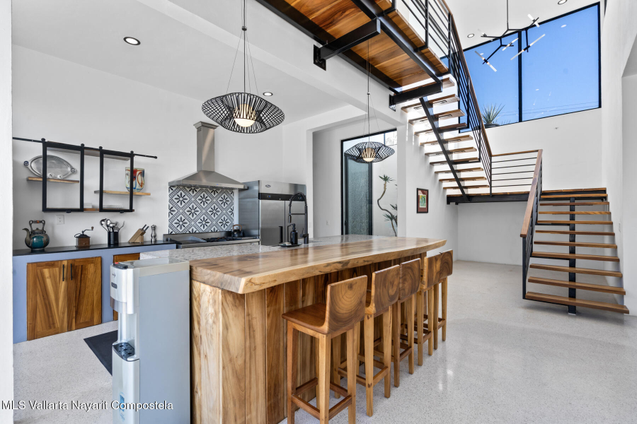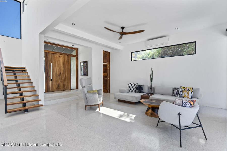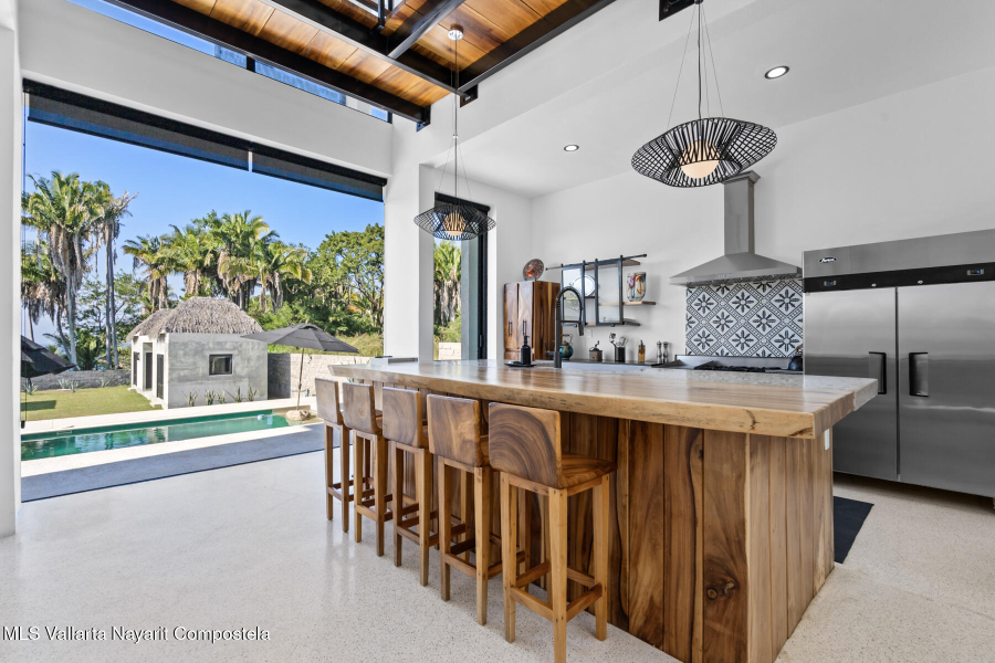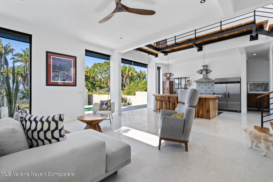 (English below) Hermosa villa con arquitectura contemporanea en la zona de Litibu, Higuera Blanca. Esta maravillosa propiedad, construida sobre un terreno de 1,027.57 m, esta cercada por un porton electrico. Cuenta con una espectacular arquitectura contemporanea en concreto aparente con acabados en estuco, pisos de cemento pulido, techos altos de mas de 3 metros que aportan frescura al espacio, y ventanas anti-huracan con vistas al jardin y la zona de la piscina. Las ventanas del segundo piso ofrecen vistas al mar y la selva, permitiendo contemplar la puesta de sol sobre la maravillosa Bahia de Litibu.Villa Loma Litibu tiene 348.57 m construidos. La casa principal, en la planta baja, cuenta con una hermosa cocina abierta con vista al jardin y la
