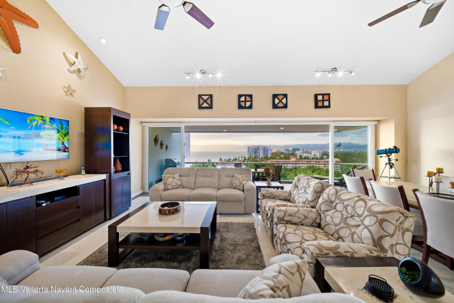 Vida de lujo, inversion inteligente. Este atico de la novena planta combina elegancia natural con potencial de inversion. Con techos altos tipo catedral, una cocina moderna totalmente electrica y cuatro dormitorios con bano privado (uno con banera de hidromasaje), esta completamente amueblada y llave en mano. La comodidad esta garantizada con brisas naturales, ventiladores de techo y mini-splits en todo el espacio.Disfruta de vistas panoramaticas de North Bay, playa, jardines, tres piscinas brillantes y servicios de estilo resort, incluyendo un snack bar a solo unos pasos. Mas alla de su atractivo como retiro privado, este ofrece solidas oportunidades de alquiler, lo que la convierte en una opcion ideal para inversores que buscan tanto estilo de vida como rendimientos