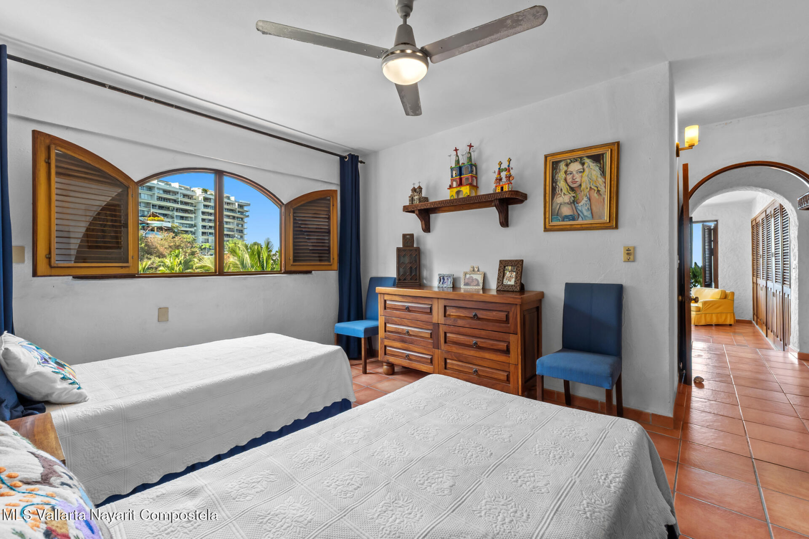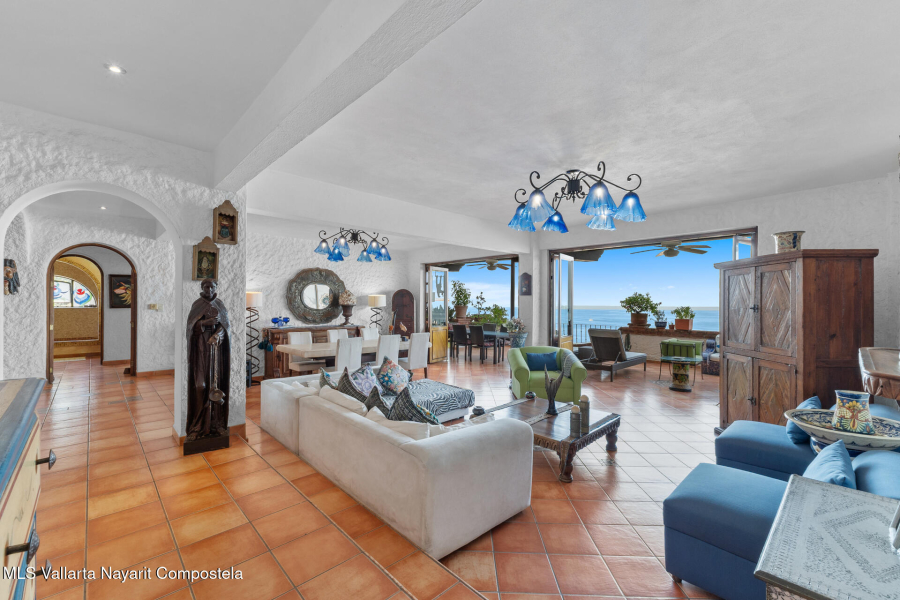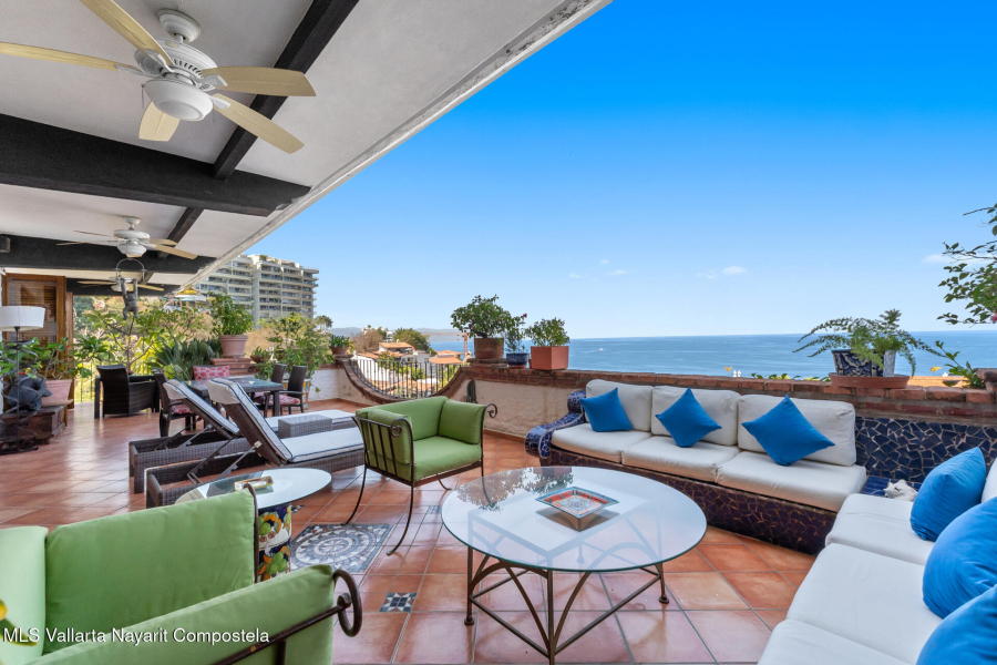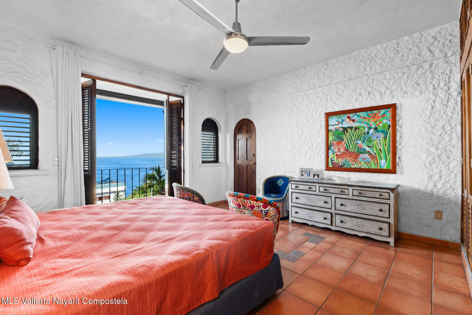 A Condominium with the Feel of a Private Villa! This exceptional second-floor residence, located in a charming and serene boutique complex, offers the ultimate blend of privacy, comfort, and breathtaking panoramic views of the entire bay. One of its most unique features is the included 50% ownership of the lot in front, guaranteeing that your stunning views remain unobstructed forever. Designed for both relaxation and entertaining, the open-concept living and dining areas flow seamlessly onto a wonderfully spacious covered terrace. The fully equipped kitchen is both functional and stylish, featuring solid wood cabinetry, peninsula counter with bar seating, and granite countertops and custom stained-glass windows allowing ample light to the space.