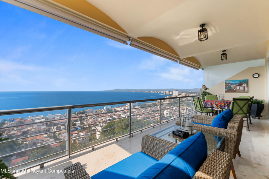 Espanol abajoVista Bahia II Penthouse 3Cinco de Diciembre 3 Bedrooms 2 Full Baths 2 Half Baths 3,431 sq. ft.Perched on the hillside of Cinco de Diciembre, Vista Bahia II Penthouse 3 is an exceptional 3-bedroom home offering 3,431 sq. ft. of refined living space, timeless design, and breathtaking views of the ocean, city, mountains, and jungle.Developed by HEVA, one of Vallarta’s most respected builders, this residence showcases their signature craftsmanship–true quality, thoughtful architectural flow, and elegant finishes throughout.Main LevelYour experience begins with a curved entrance corridor, setting a tranquil, sophisticated tone. The spacious main terrace delivers a full ocean view, ideal for enjoying Vallarta’s spectacular sunsets.