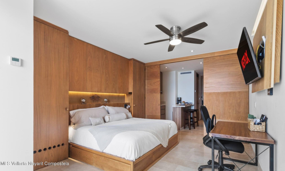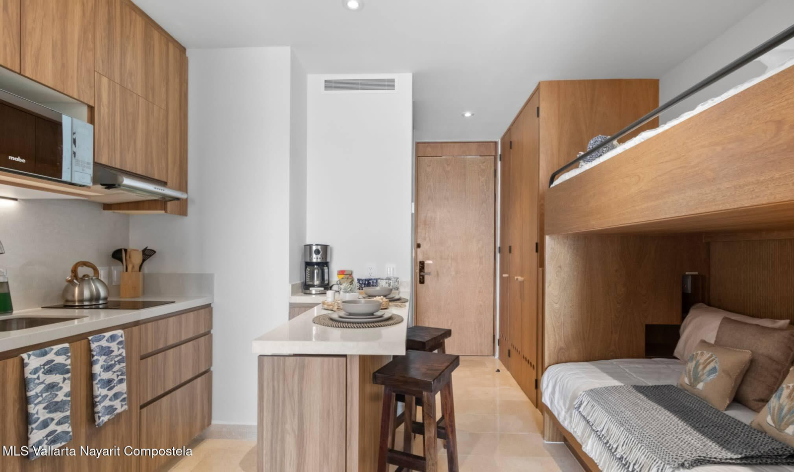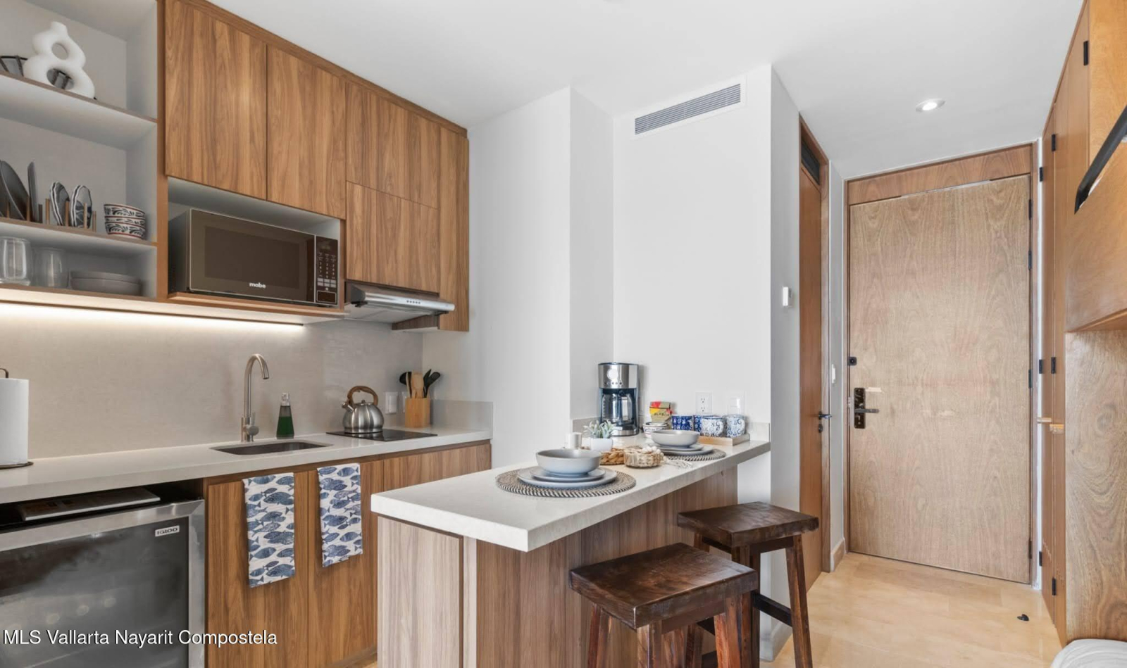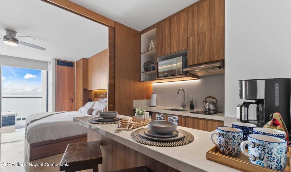 Estudio frente al mar listo para habitar, con espectacular vista panoramica y excelente potencial de ingresos inmediatos por renta vacacional. Se entrega completamente amueblado y equipado, combinando comodidad, funcionalidad y ubicacion privilegiada. Ideal como hogar, inversion o segunda residencia. Ubicado a pasos de la playa en La Cruz de Huanacaxtle, cuenta con internet de alta velocidad, TV de 55”, TV de 28” en litera, dos banos completos, acceso sin llave con codigos programables y cocina integral. Capacidad para 4 personas con cama king y literas. Zantamar 307B esta cerca de la marina, restaurantes, tiendas y clubes de playa. Perfecto para vivir o rentar de inmediato.